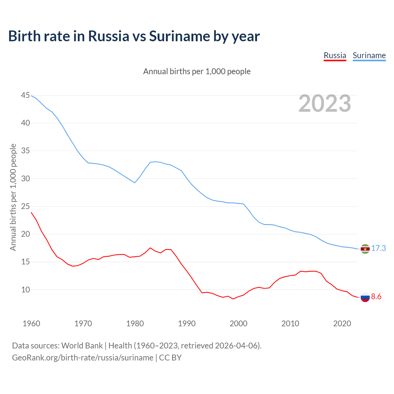 GeoRank.org/birth-rate/russia/suriname | CC BY
