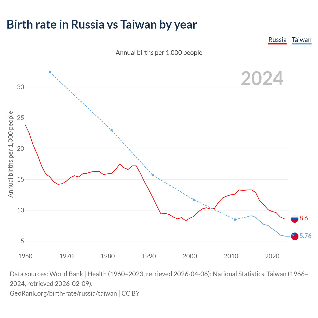 GeoRank.org/birth-rate/russia/taiwan | CC BY