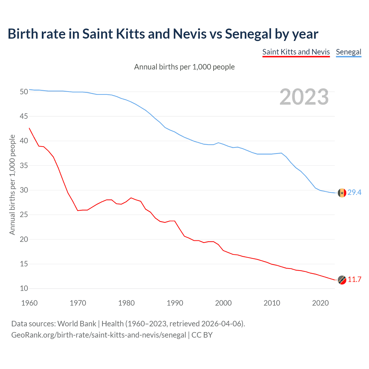 GeoRank.org/birth-rate/saint-kitts-and-nevis/senegal | CC BY
