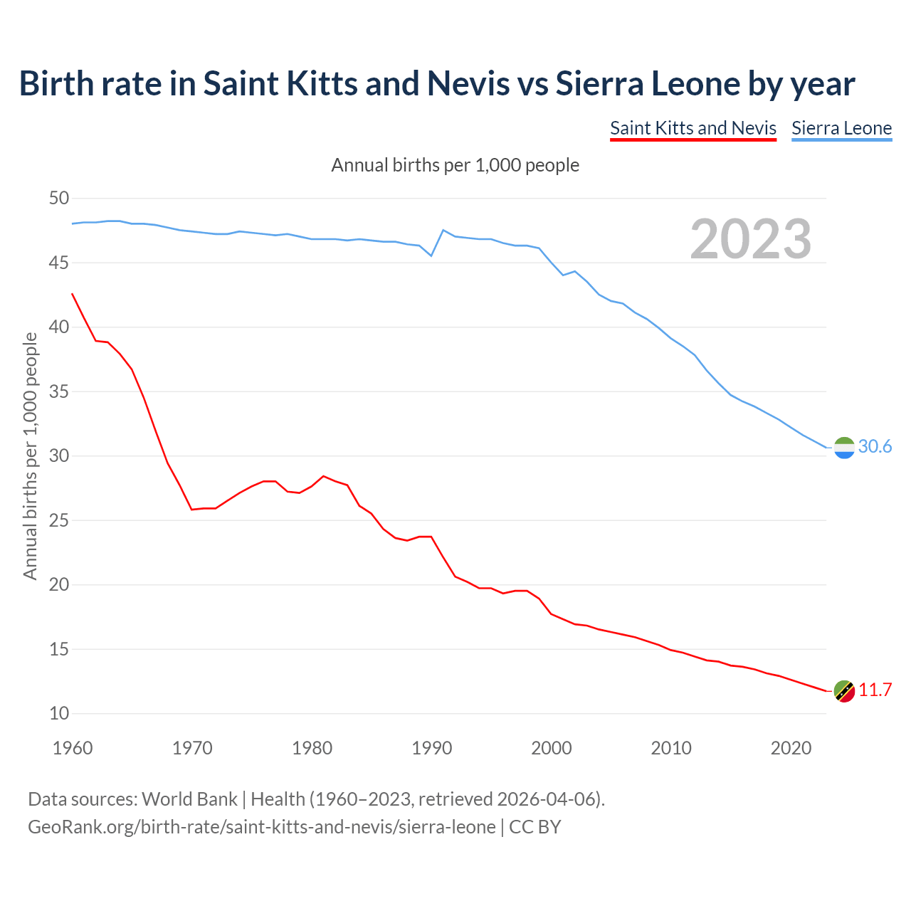 GeoRank.org/birth-rate/saint-kitts-and-nevis/sierra-leone | CC BY