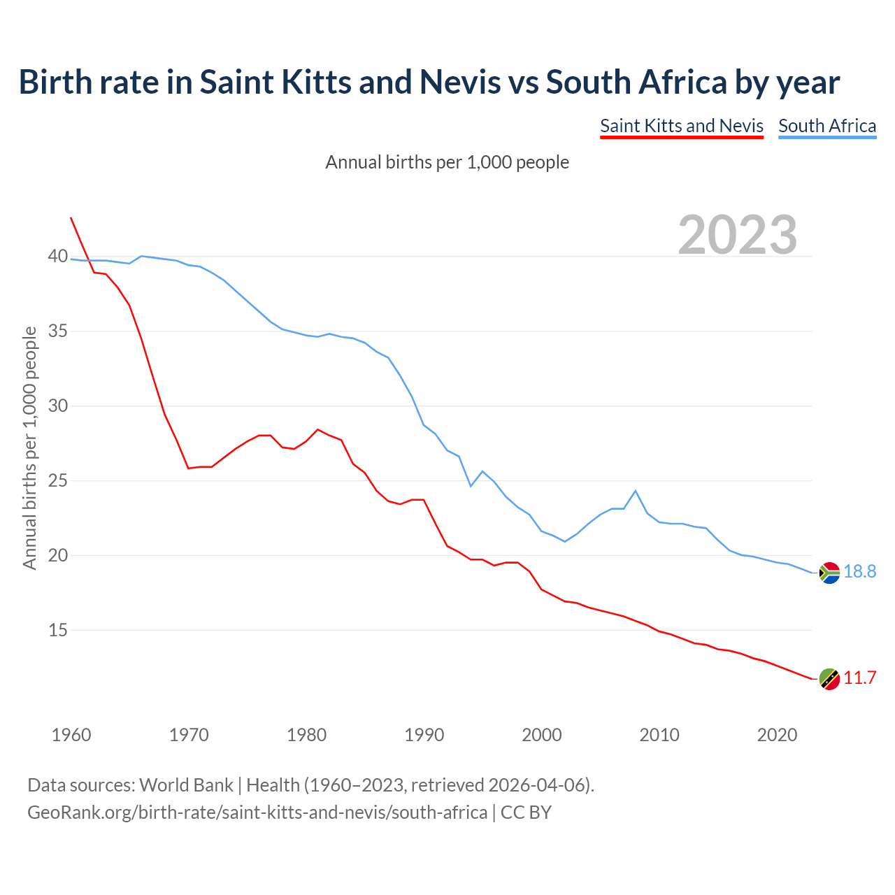 GeoRank.org/birth-rate/saint-kitts-and-nevis/south-africa | CC BY