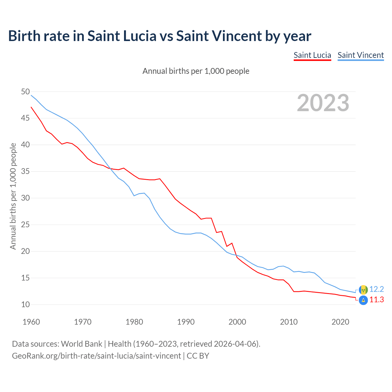 GeoRank.org/birth-rate/saint-lucia/saint-vincent | CC BY