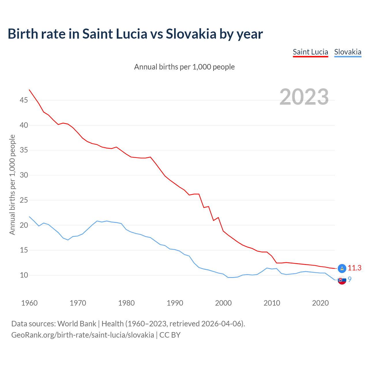 GeoRank.org/birth-rate/saint-lucia/slovakia | CC BY