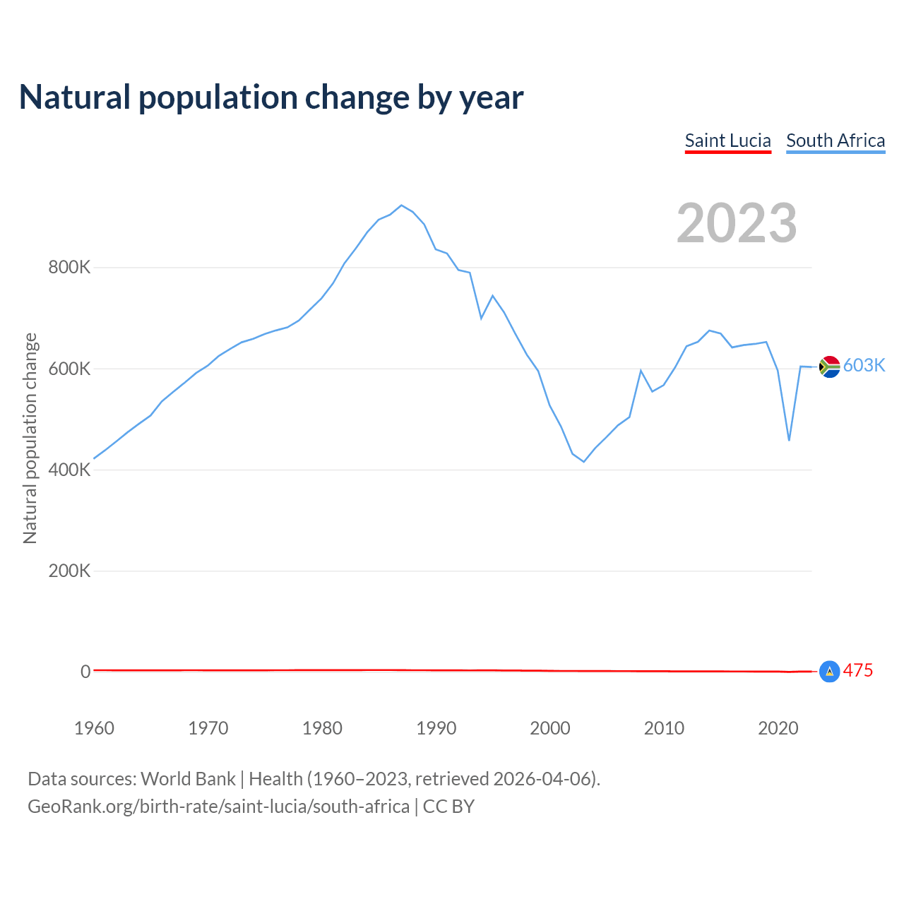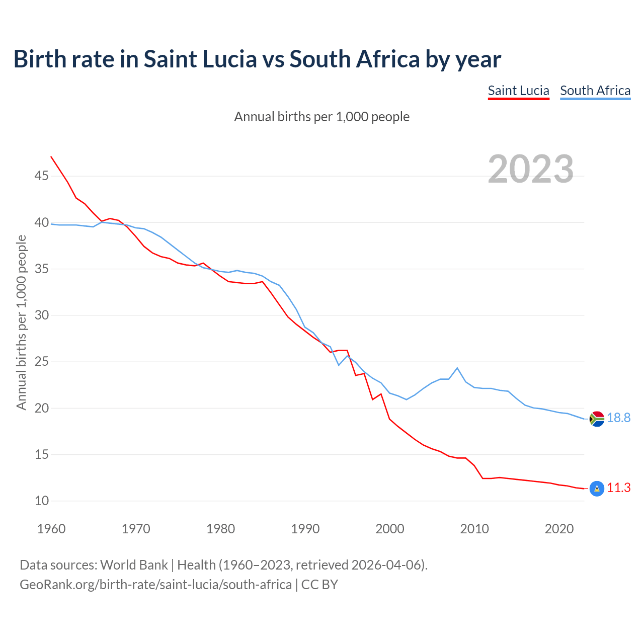 GeoRank.org/birth-rate/saint-lucia/south-africa | CC BY