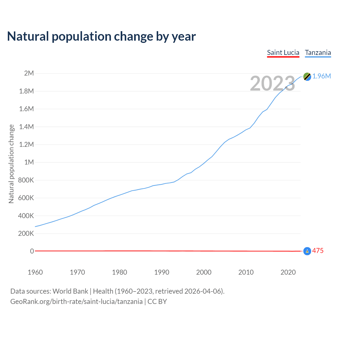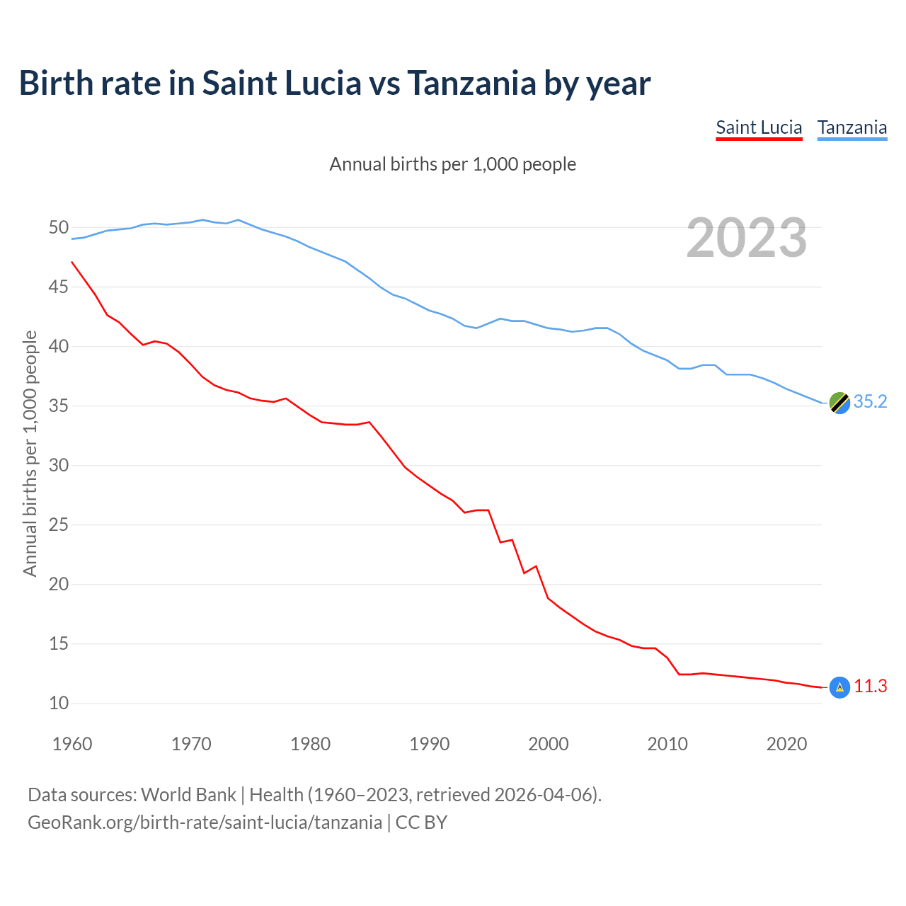 GeoRank.org/birth-rate/saint-lucia/tanzania | CC BY