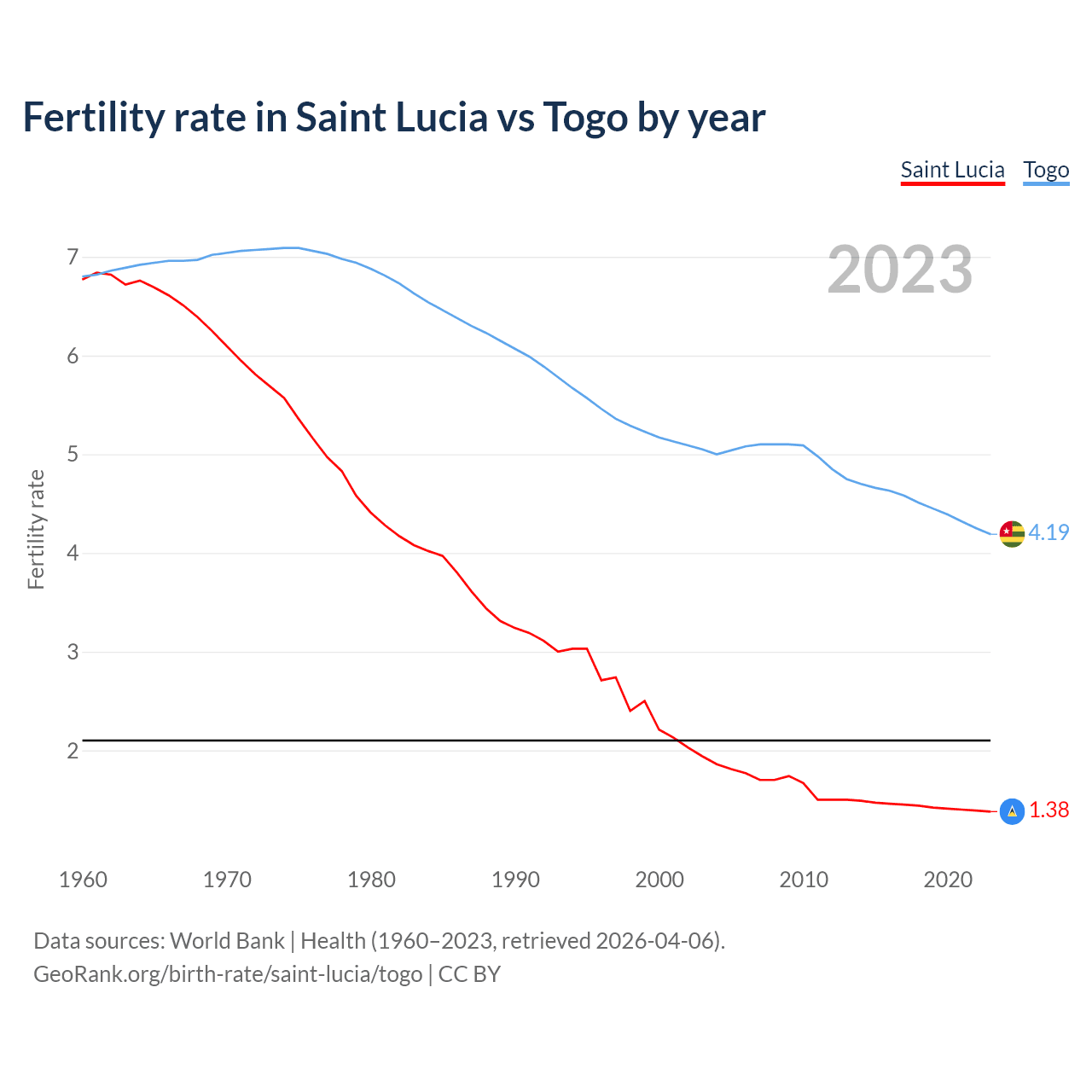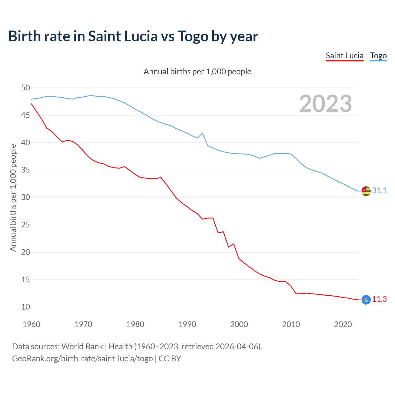 GeoRank.org/birth-rate/saint-lucia/togo | CC BY