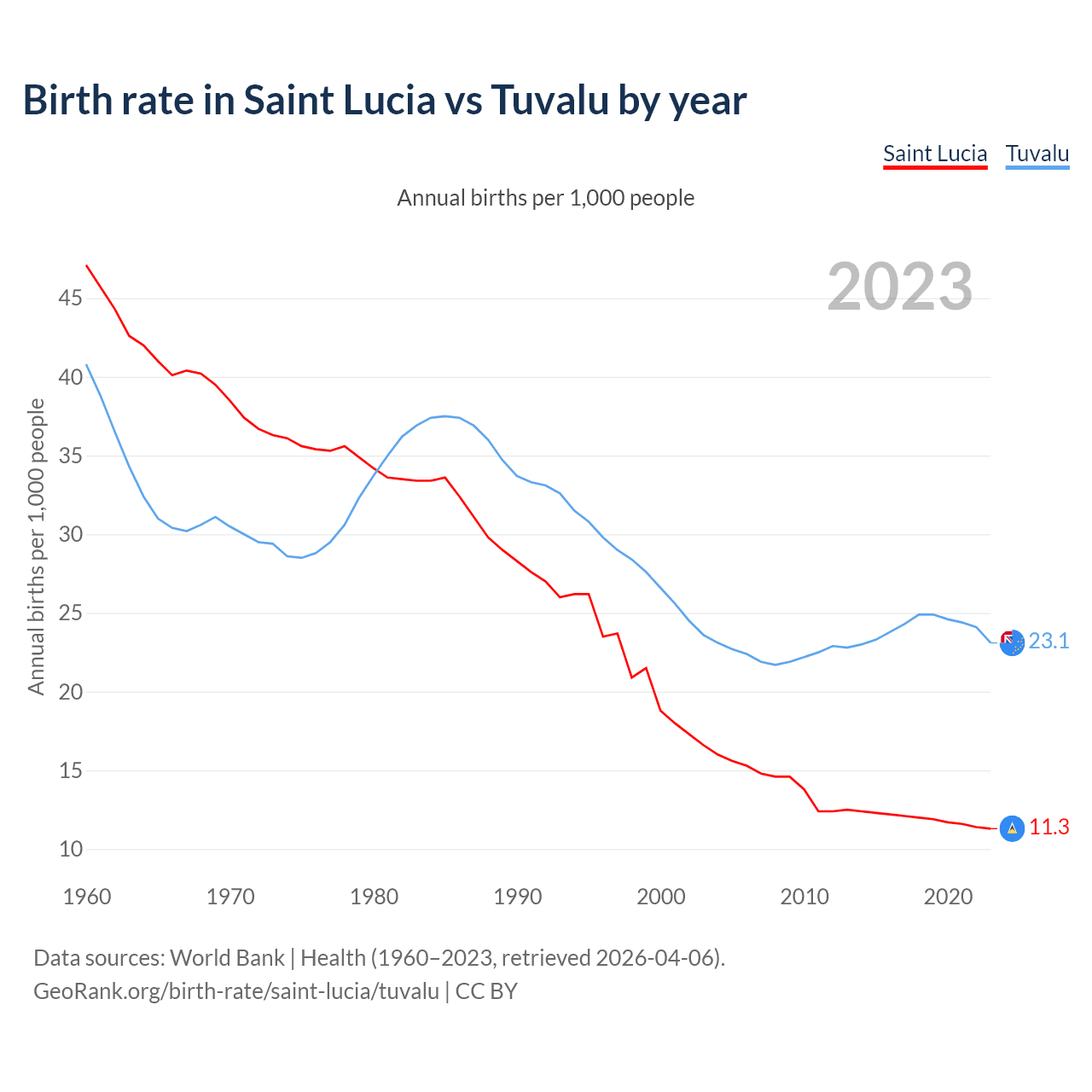 GeoRank.org/birth-rate/saint-lucia/tuvalu | CC BY