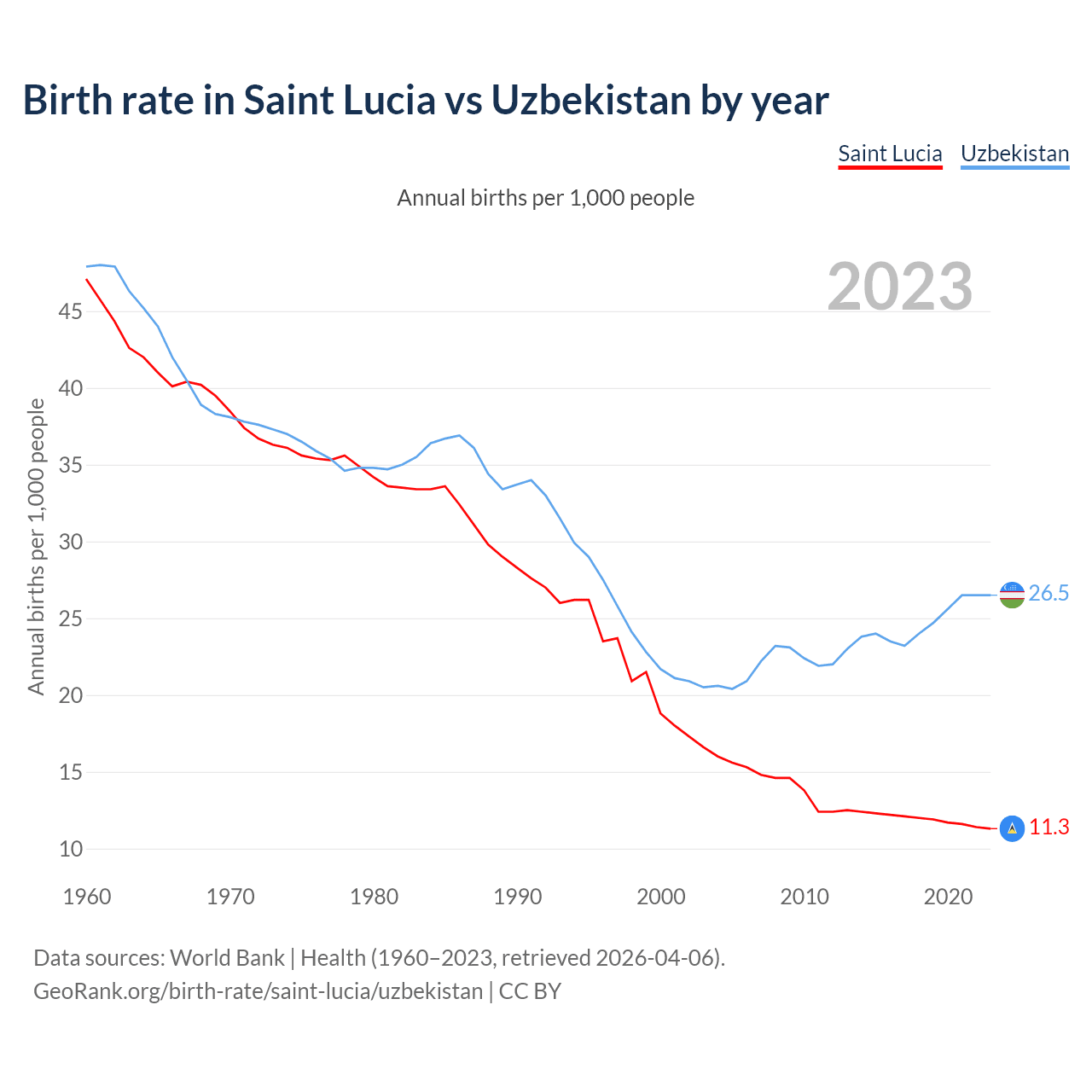 GeoRank.org/birth-rate/saint-lucia/uzbekistan | CC BY