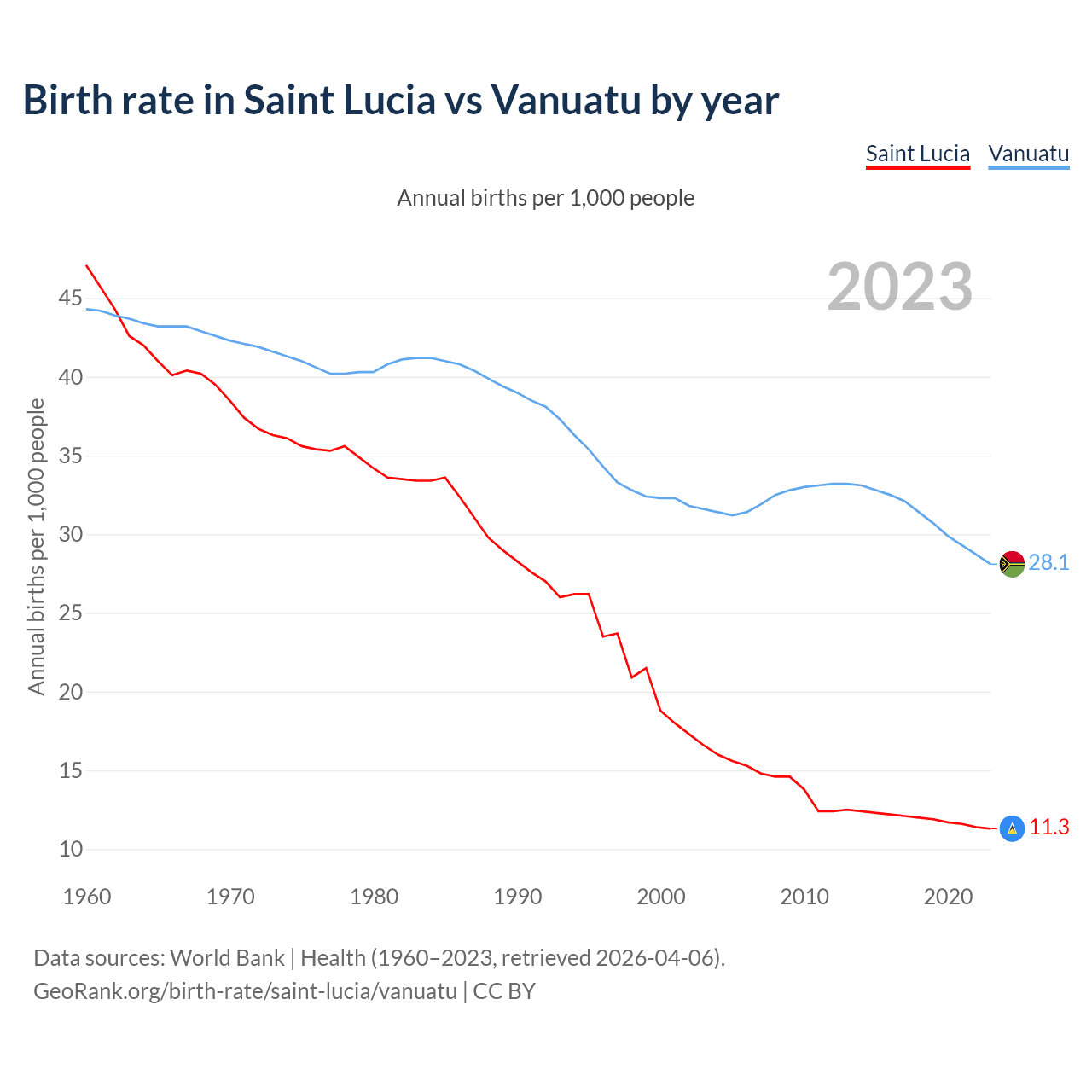 GeoRank.org/birth-rate/saint-lucia/vanuatu | CC BY