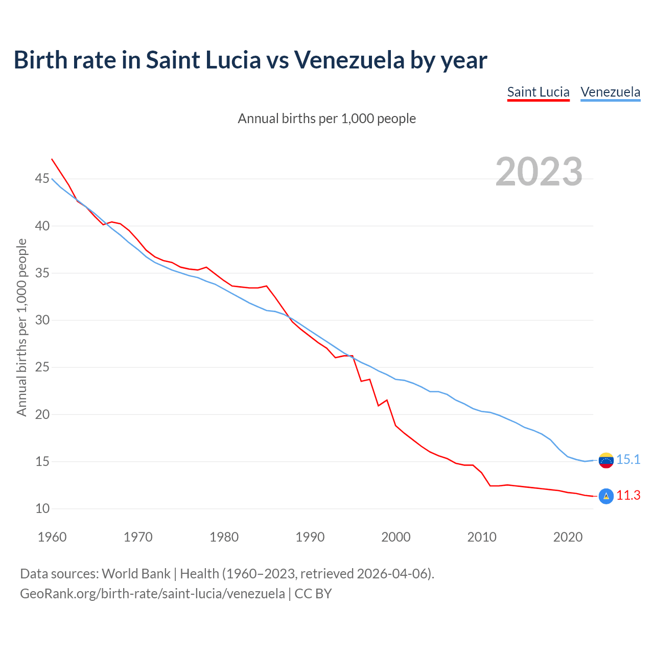 GeoRank.org/birth-rate/saint-lucia/venezuela | CC BY