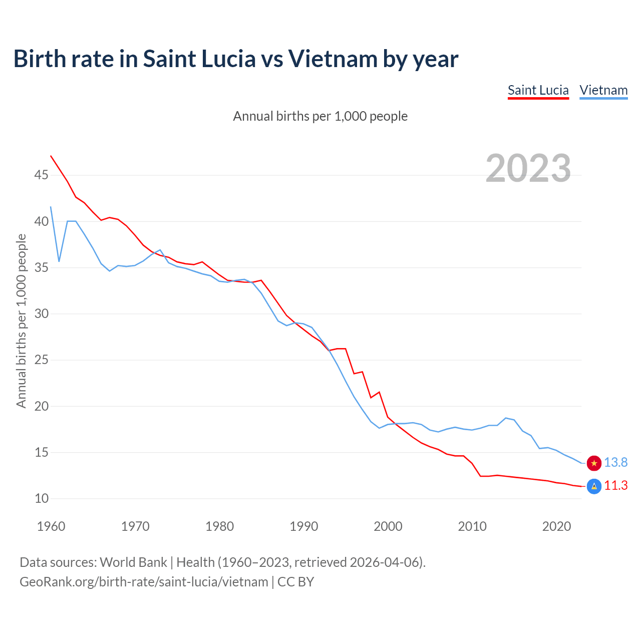GeoRank.org/birth-rate/saint-lucia/vietnam | CC BY