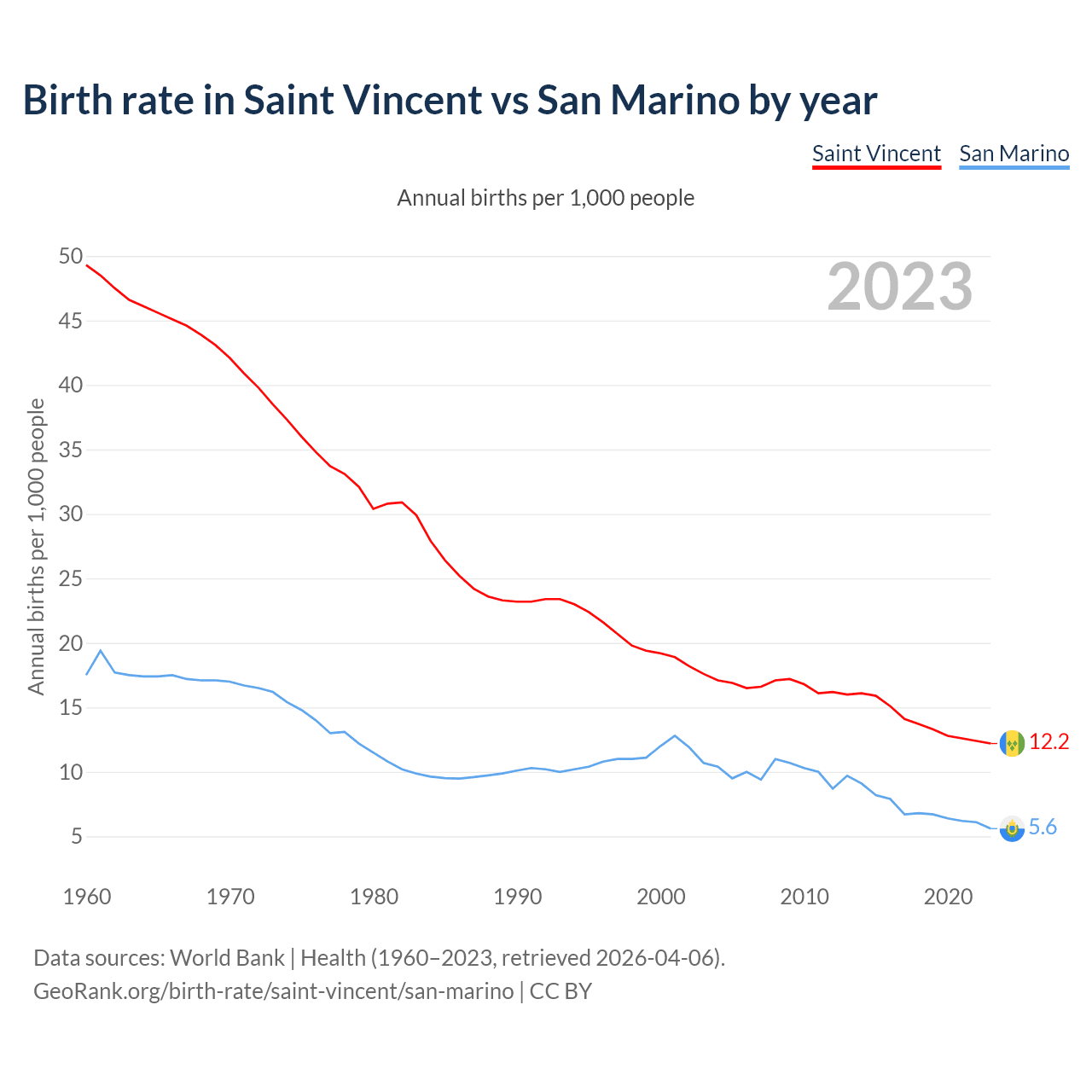 GeoRank.org/birth-rate/saint-vincent/san-marino | CC BY