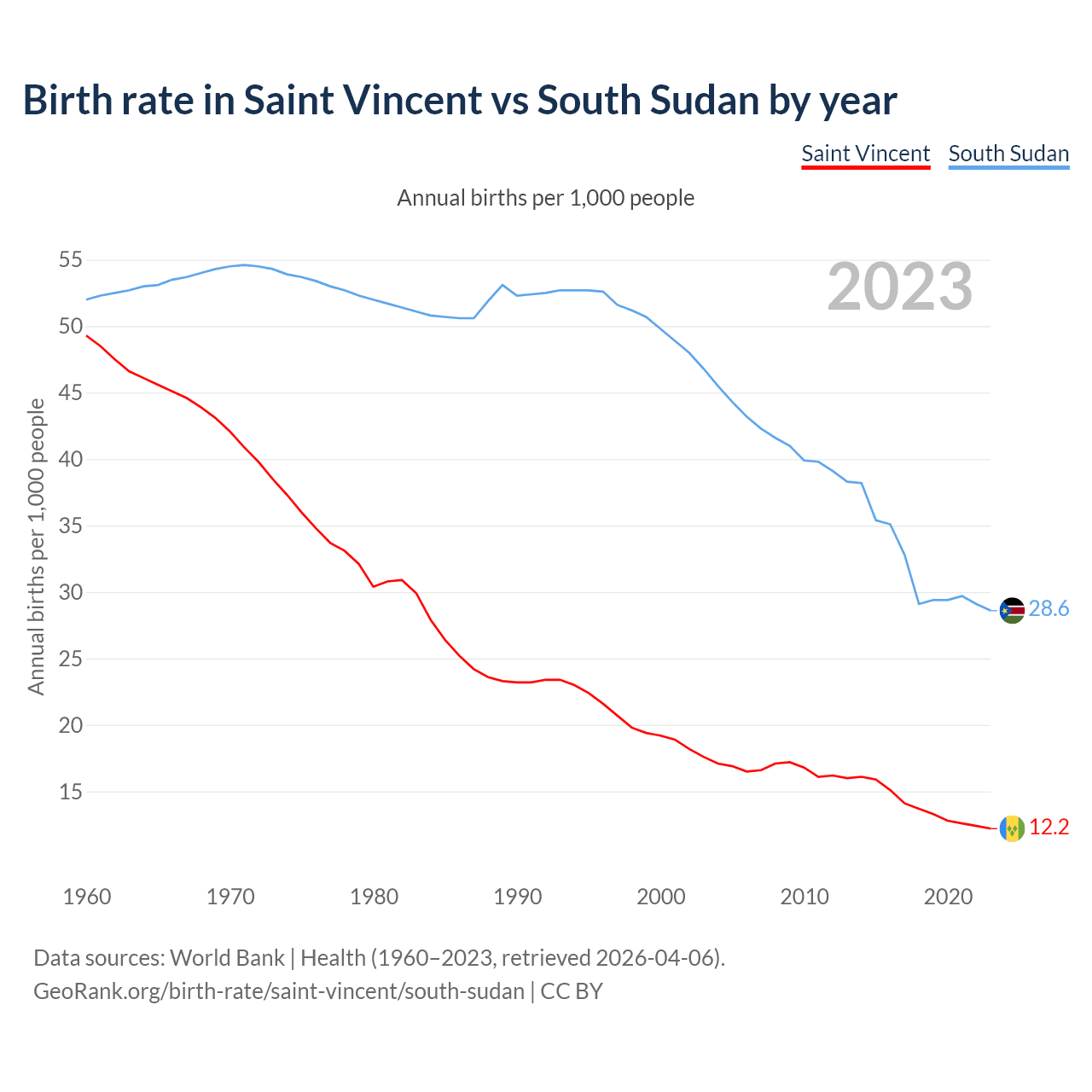 GeoRank.org/birth-rate/saint-vincent/south-sudan | CC BY