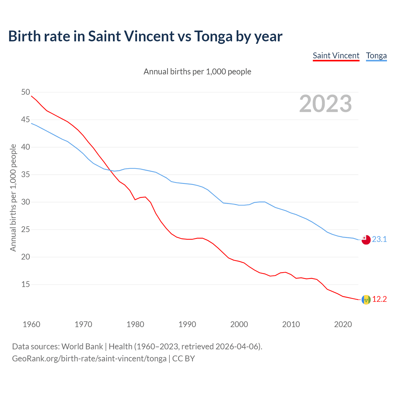 GeoRank.org/birth-rate/saint-vincent/tonga | CC BY