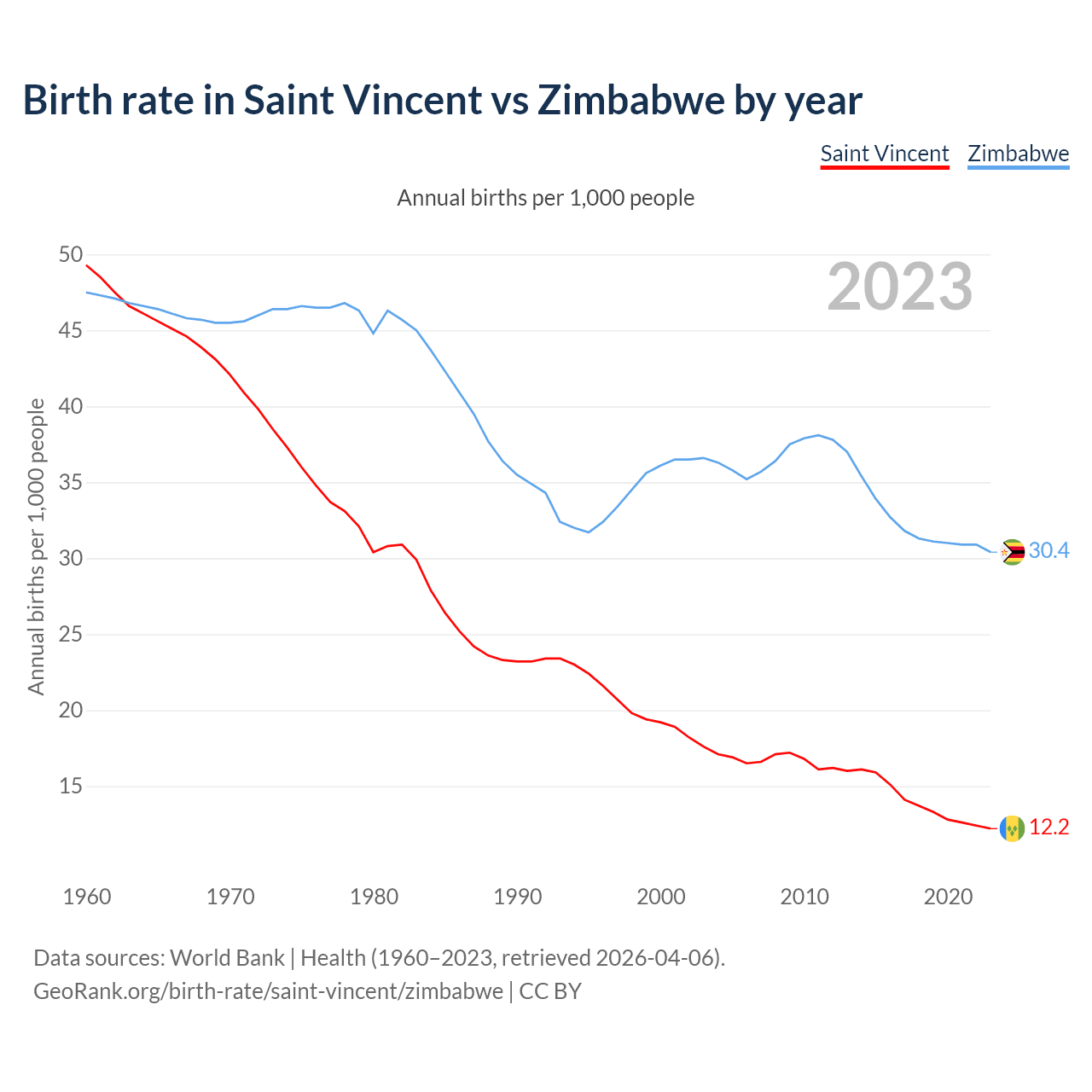GeoRank.org/birth-rate/saint-vincent/zimbabwe | CC BY