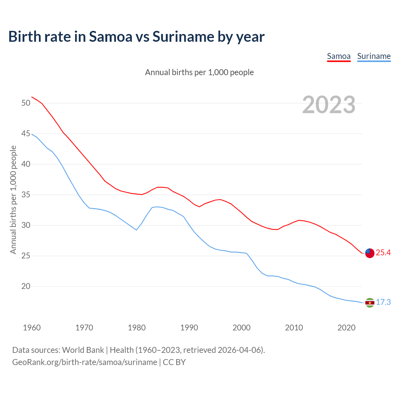 GeoRank.org/birth-rate/samoa/suriname | CC BY