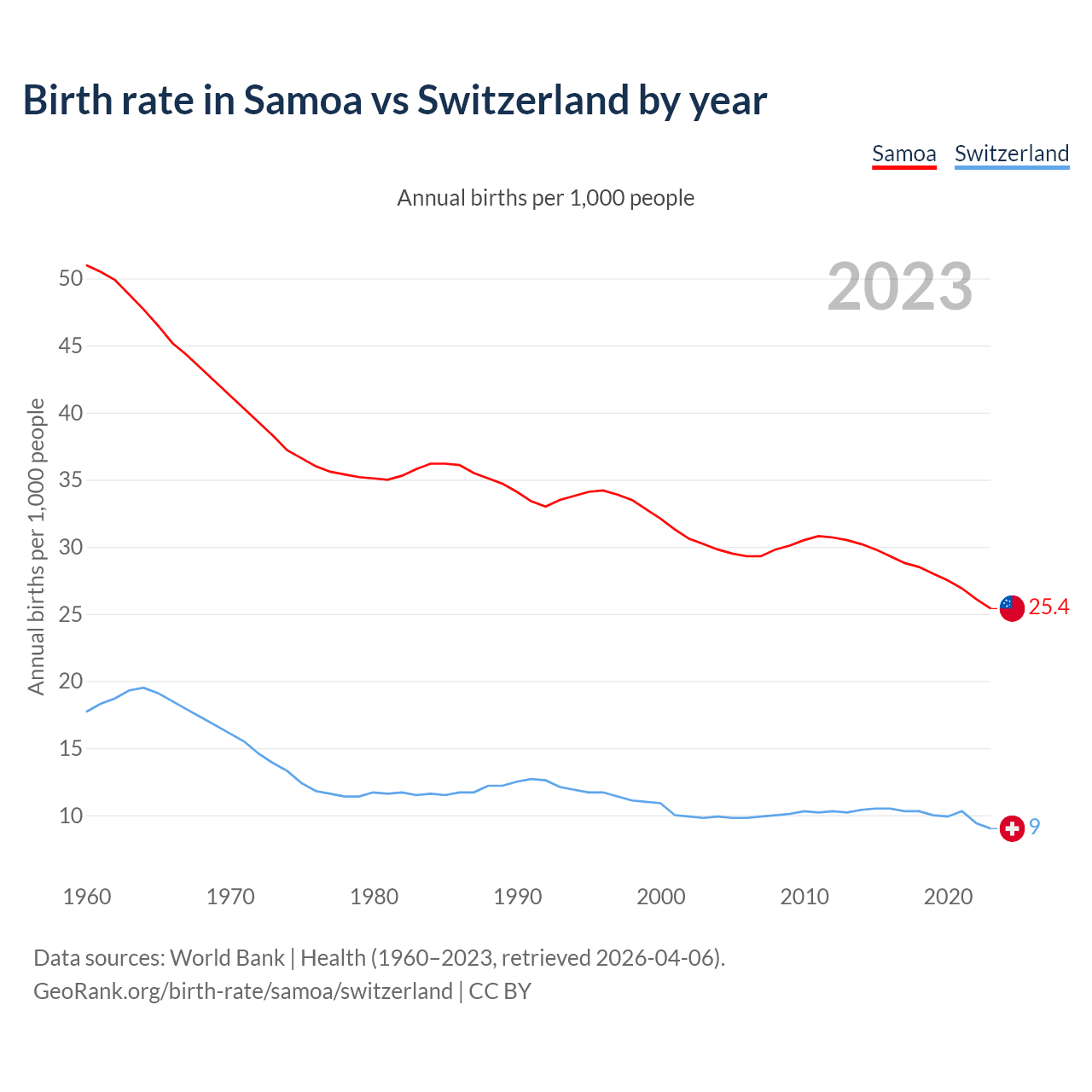 GeoRank.org/birth-rate/samoa/switzerland | CC BY