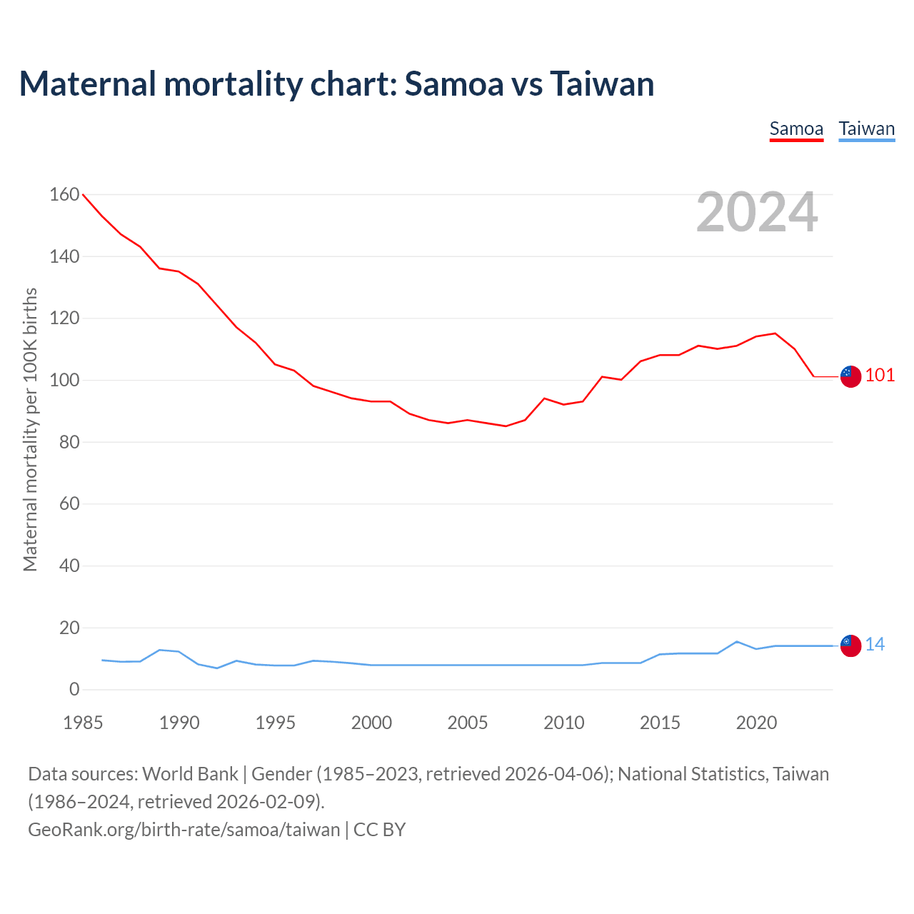 Maternal mortality chart: Samoa vs Taiwan