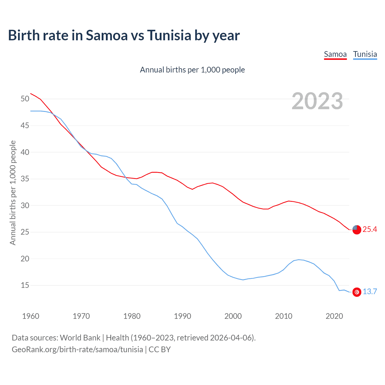 GeoRank.org/birth-rate/samoa/tunisia | CC BY