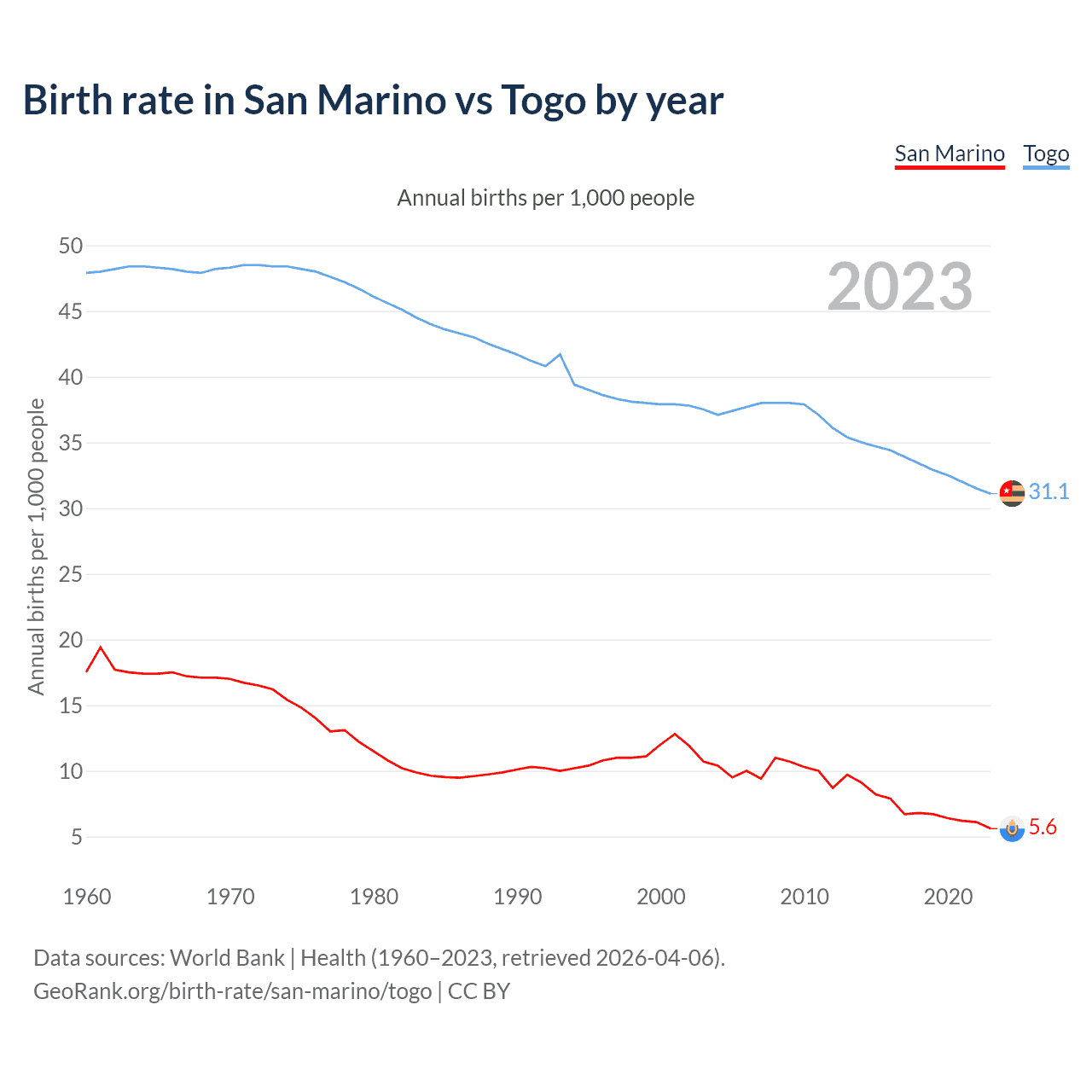 GeoRank.org/birth-rate/san-marino/togo | CC BY
