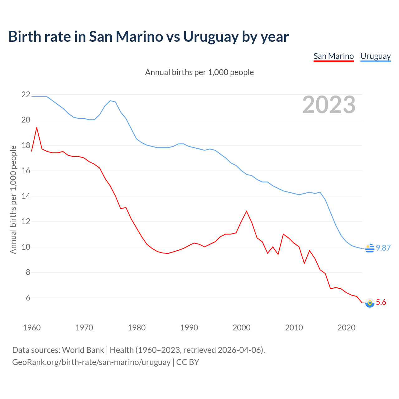 GeoRank.org/birth-rate/san-marino/uruguay | CC BY