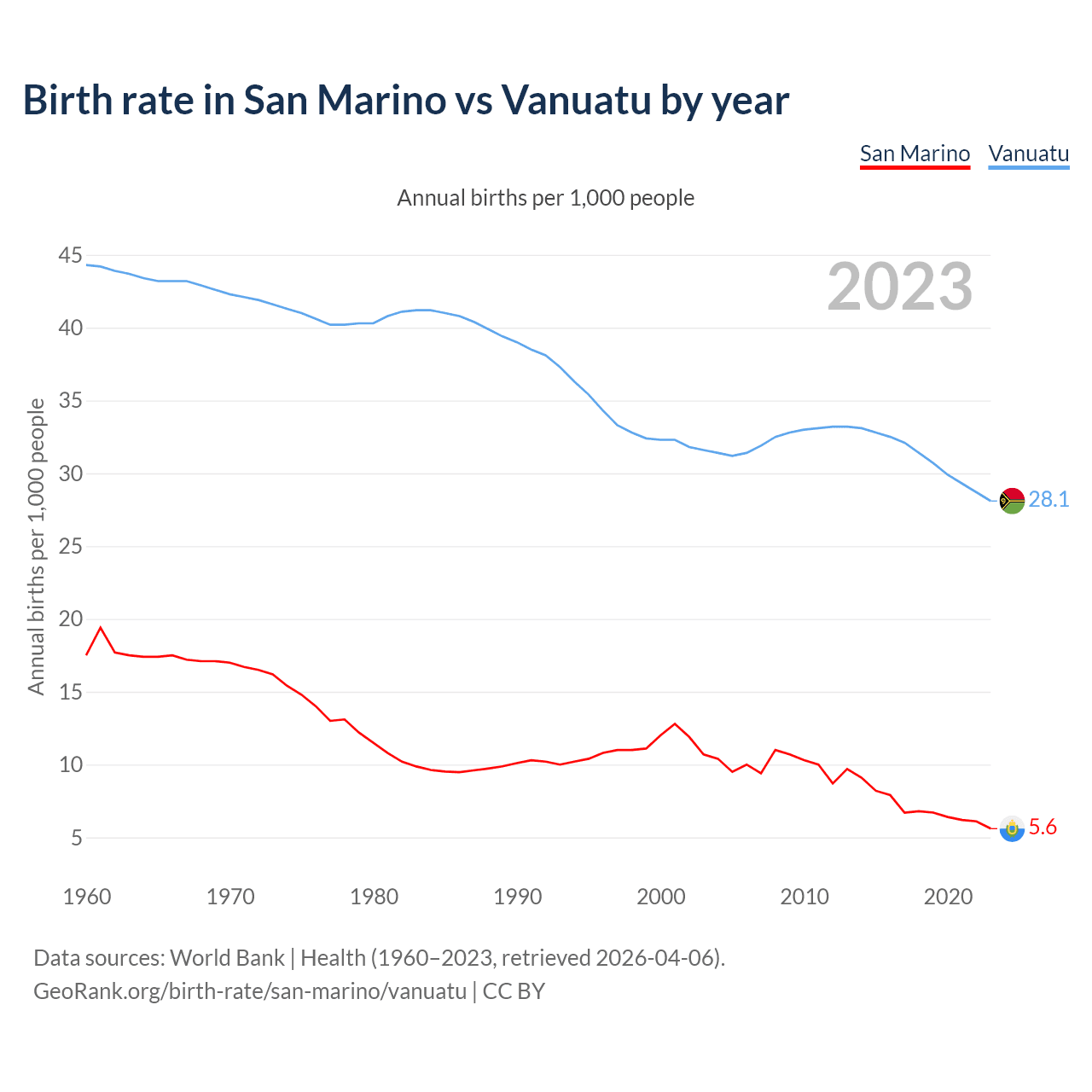 GeoRank.org/birth-rate/san-marino/vanuatu | CC BY