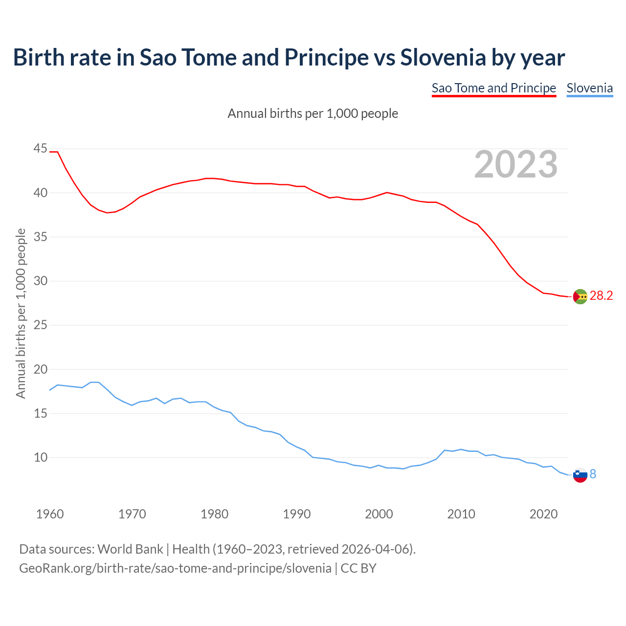GeoRank.org/birth-rate/sao-tome-and-principe/slovenia | CC BY