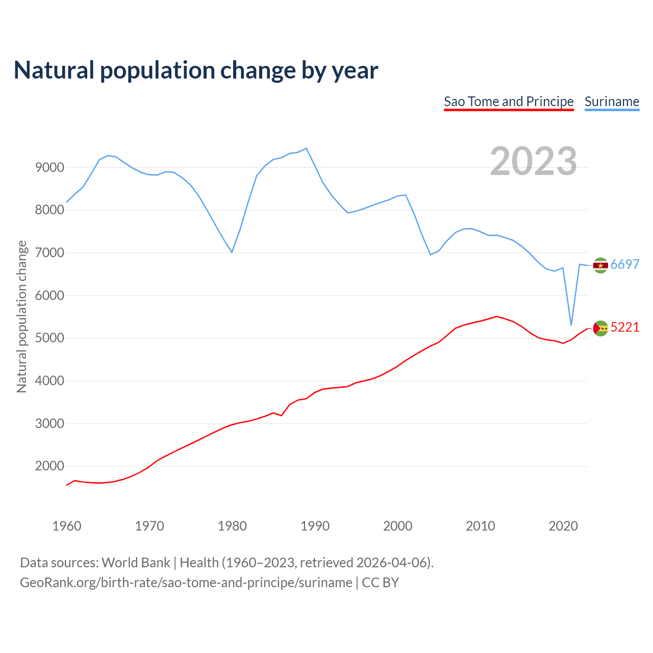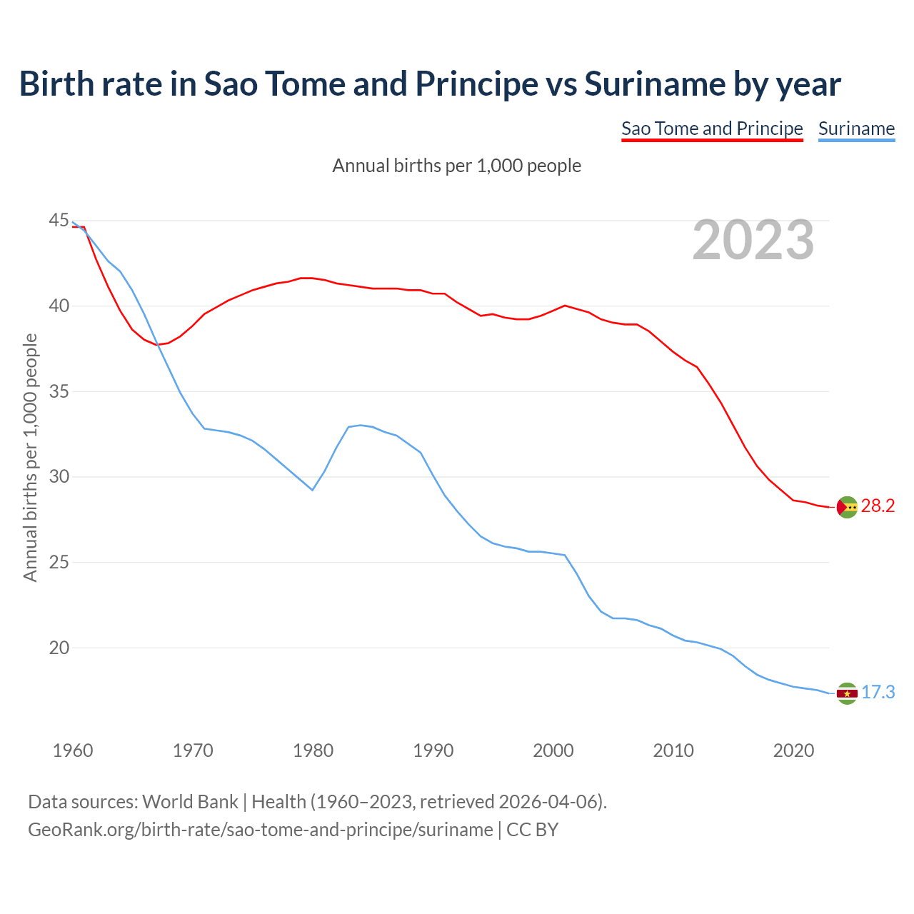GeoRank.org/birth-rate/sao-tome-and-principe/suriname | CC BY
