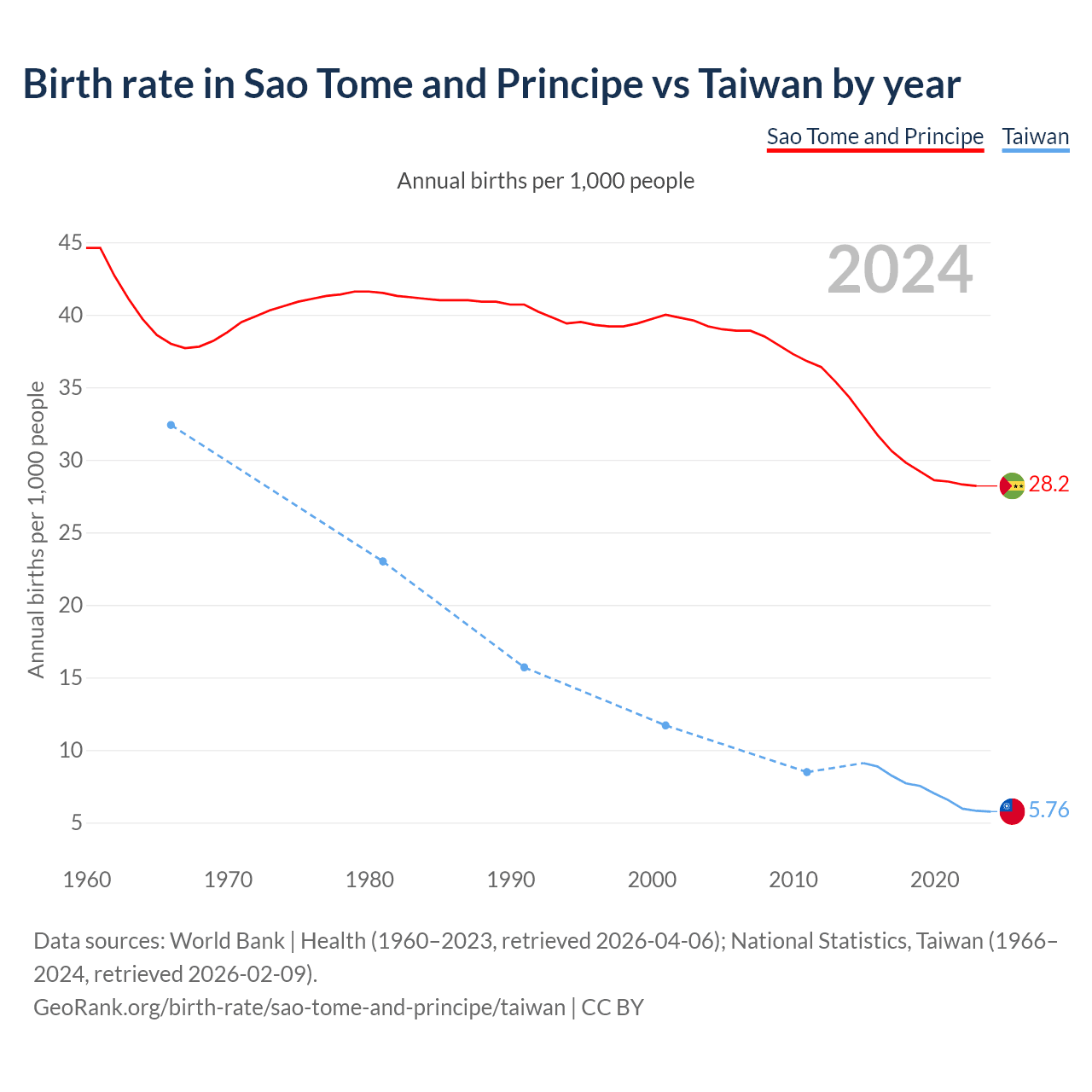 GeoRank.org/birth-rate/sao-tome-and-principe/taiwan | CC BY