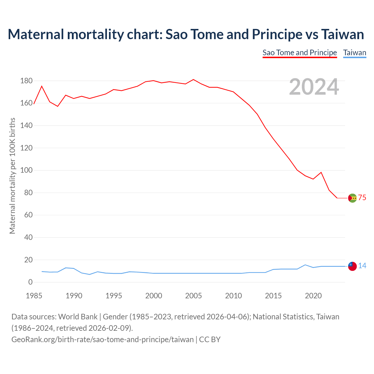 Maternal mortality chart: Sao Tome and Principe vs Taiwan