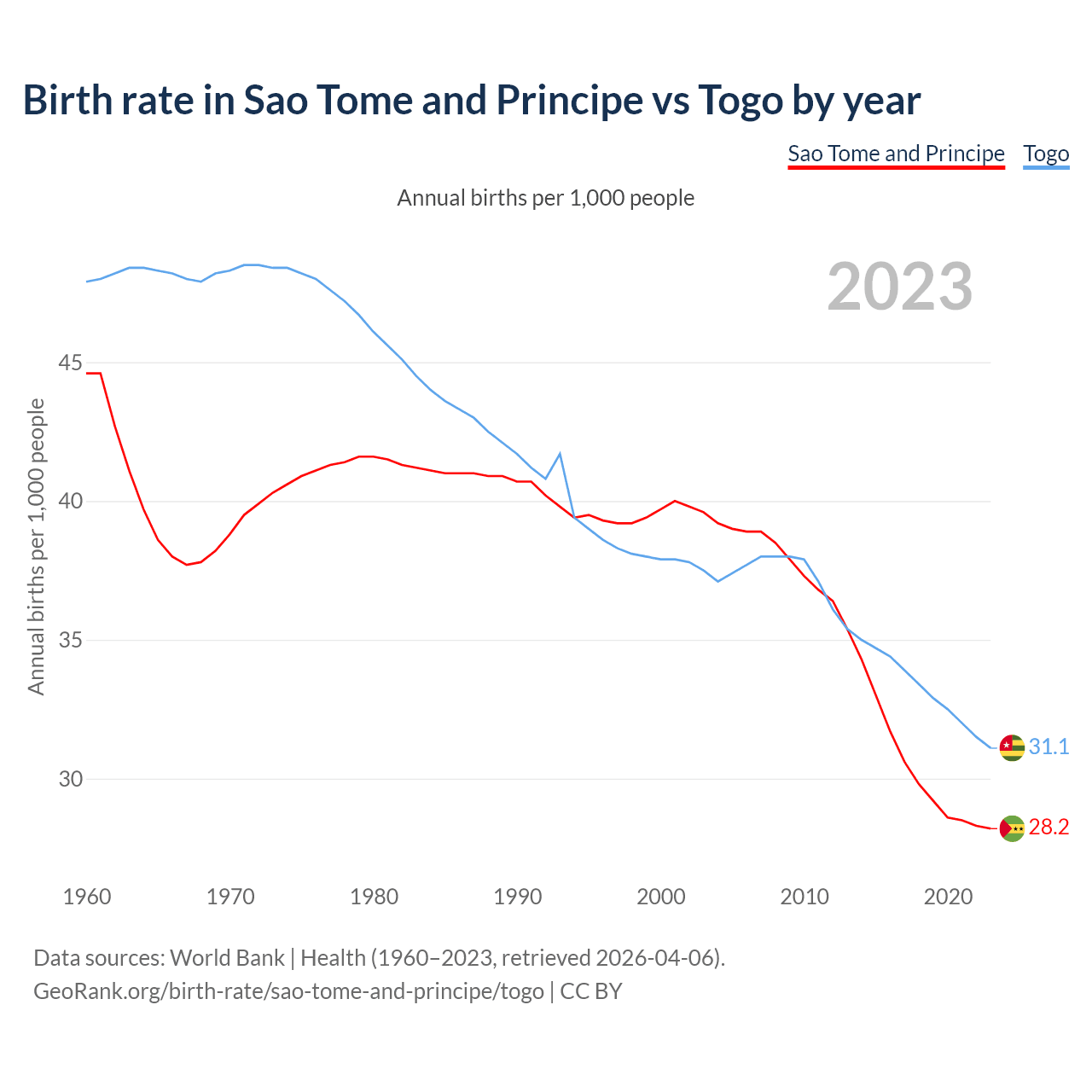 GeoRank.org/birth-rate/sao-tome-and-principe/togo | CC BY