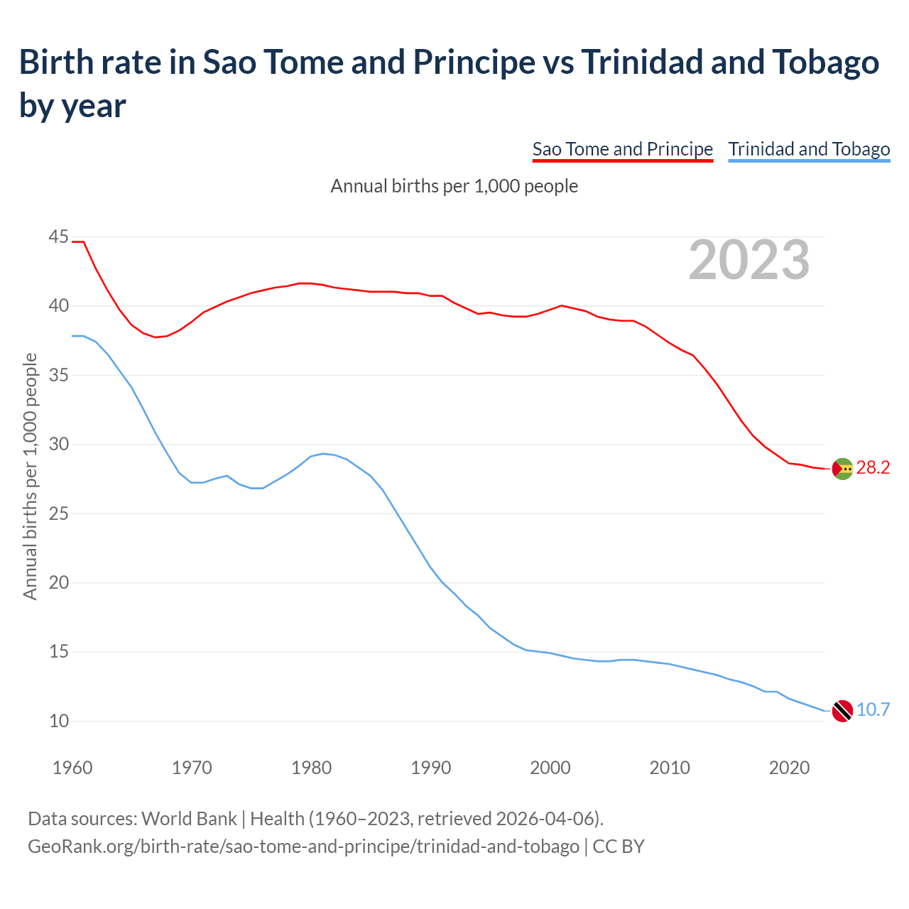 GeoRank.org/birth-rate/sao-tome-and-principe/trinidad-and-tobago | CC BY