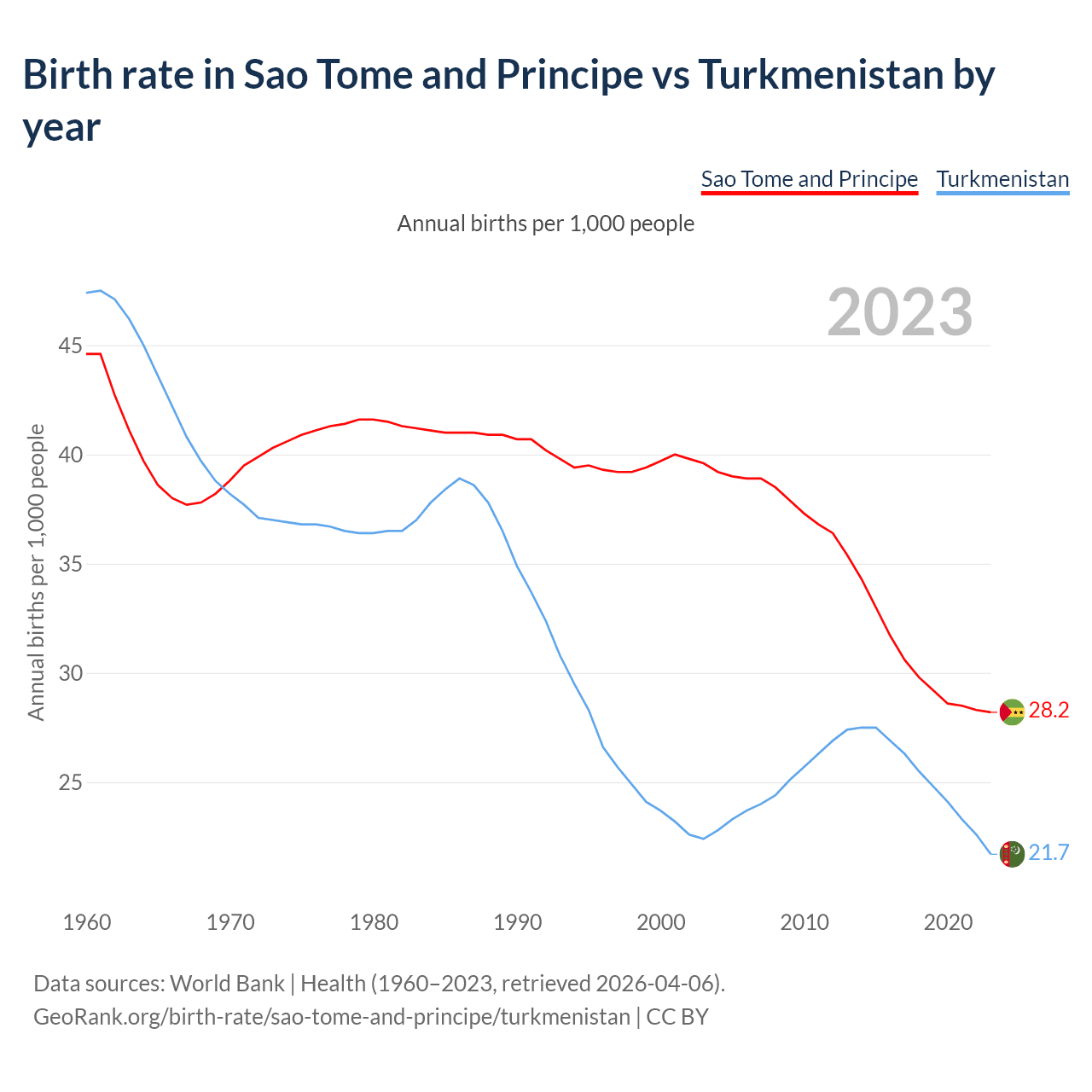 GeoRank.org/birth-rate/sao-tome-and-principe/turkmenistan | CC BY