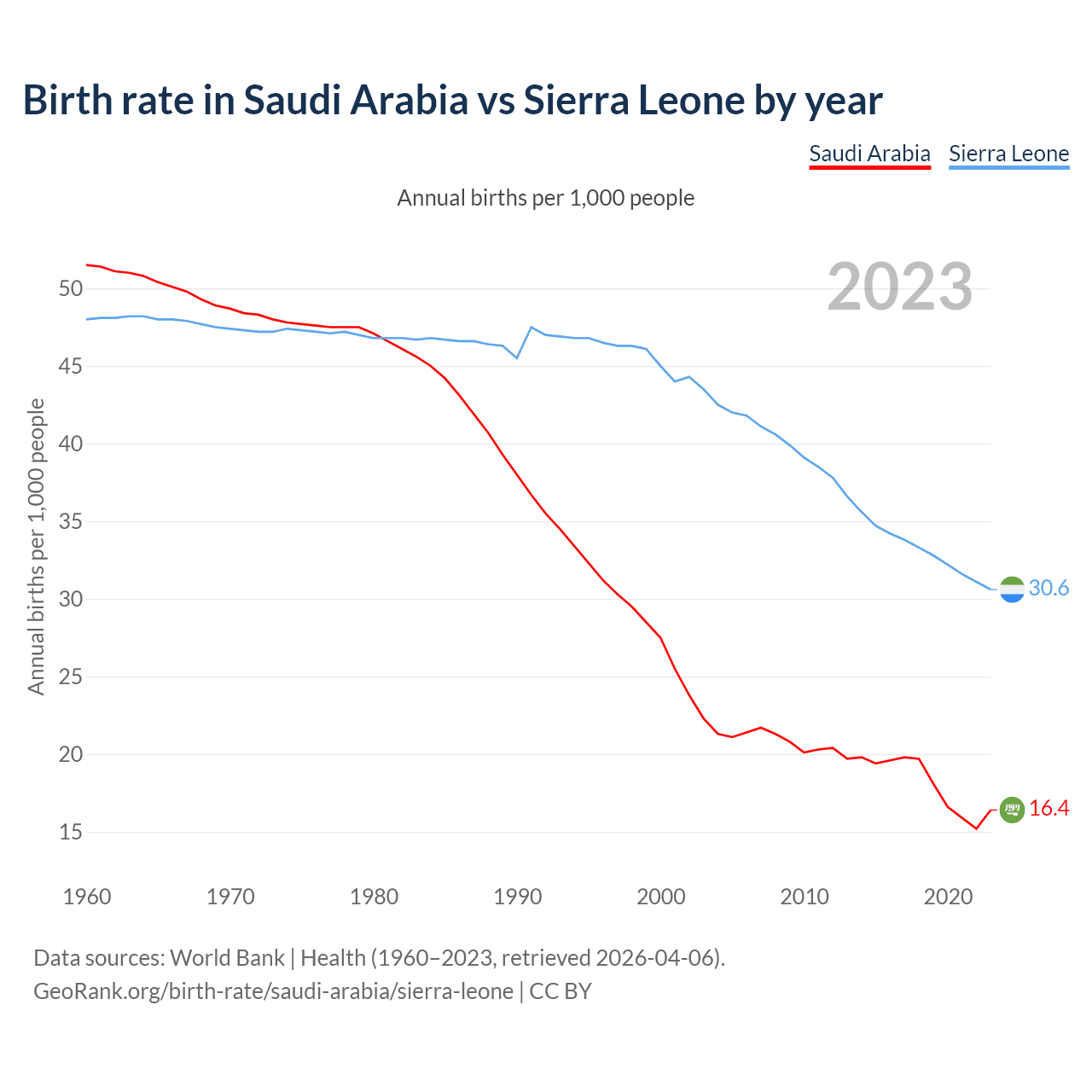 GeoRank.org/birth-rate/saudi-arabia/sierra-leone | CC BY