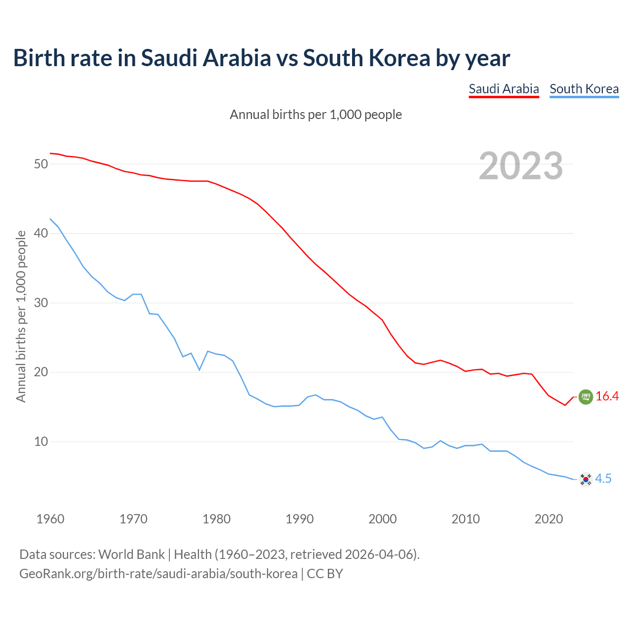 GeoRank.org/birth-rate/saudi-arabia/south-korea | CC BY