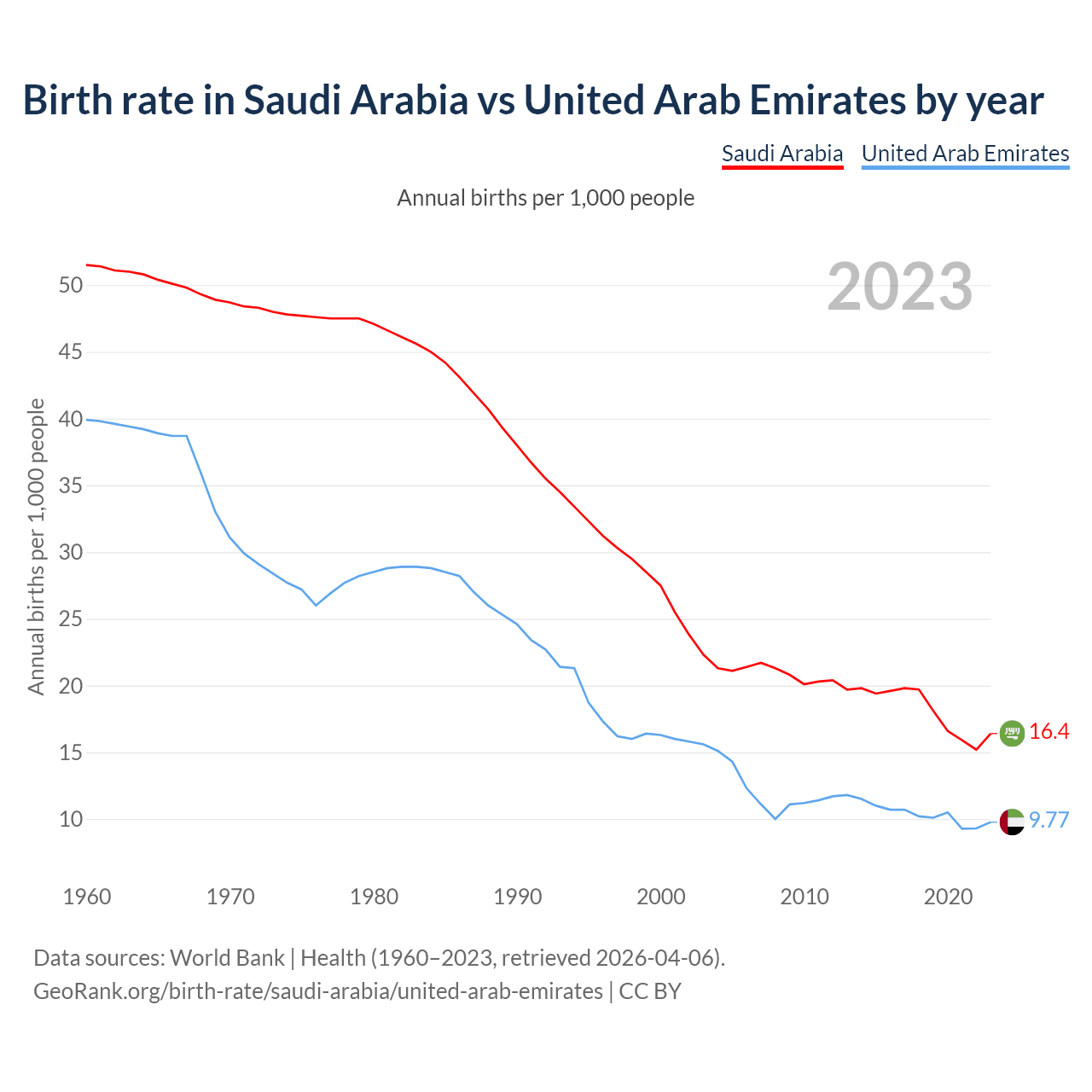 GeoRank.org/birth-rate/saudi-arabia/united-arab-emirates | CC BY