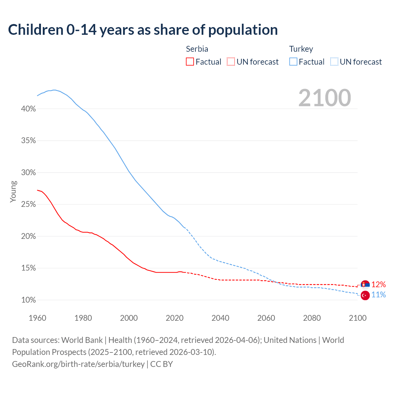 - Serbia is ranked 159/196 by birth rate compared to 126/196 for Turkey.