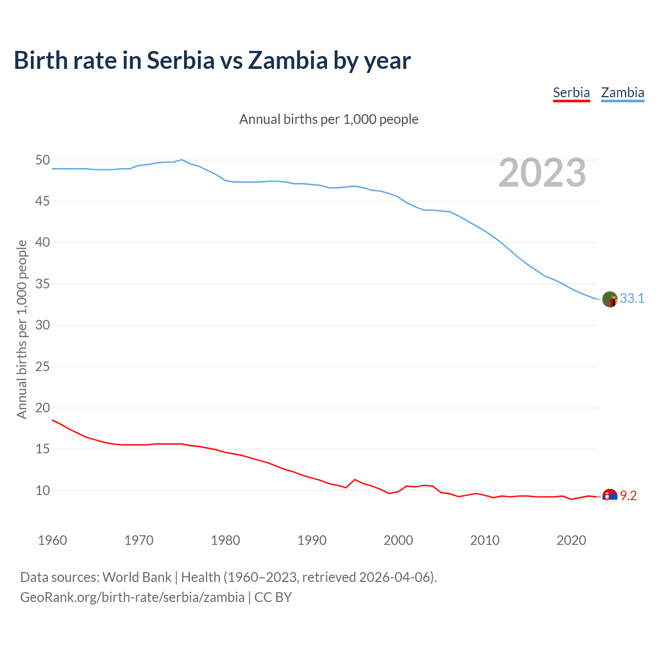 GeoRank.org/birth-rate/serbia/zambia | CC BY