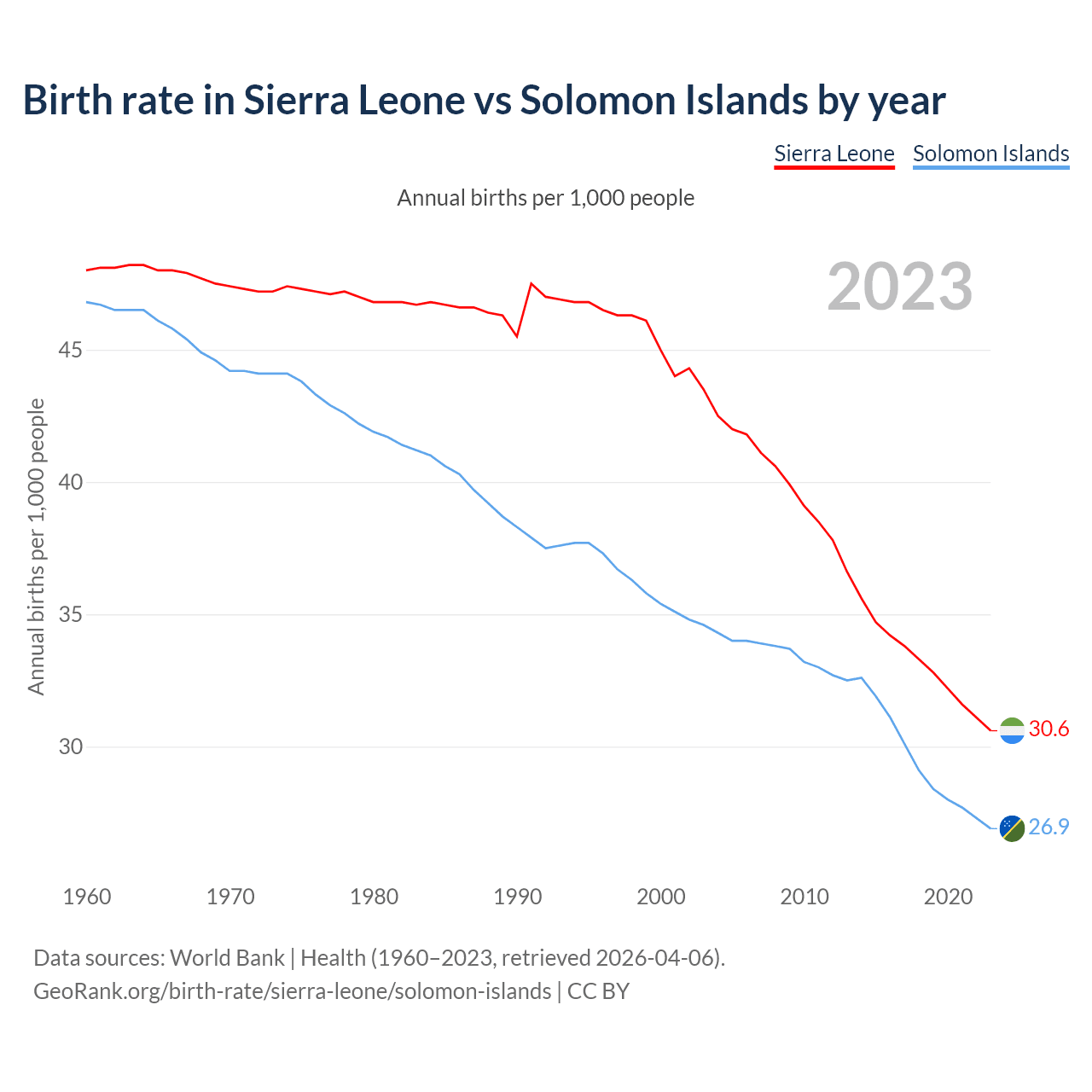 GeoRank.org/birth-rate/sierra-leone/solomon-islands | CC BY