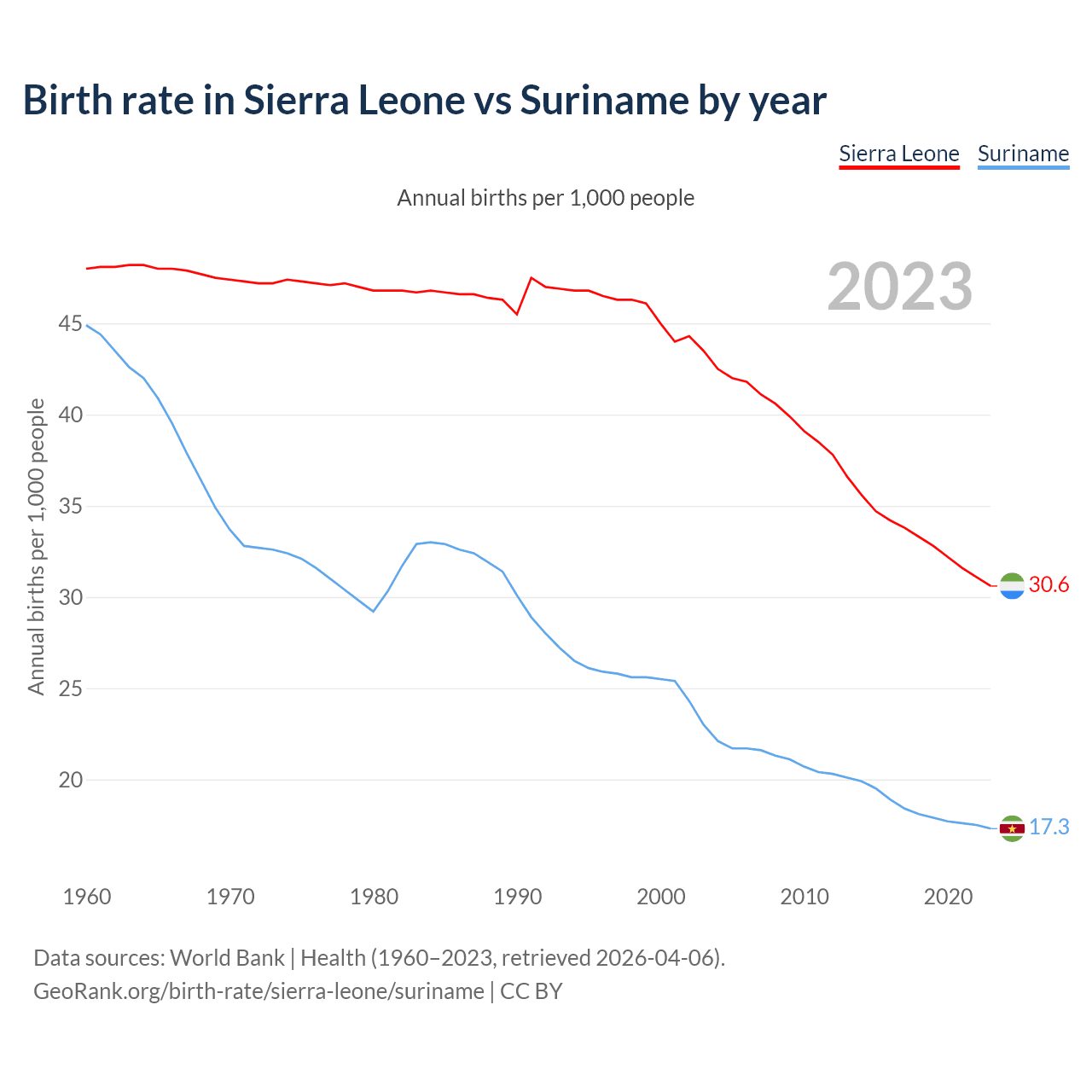 GeoRank.org/birth-rate/sierra-leone/suriname | CC BY
