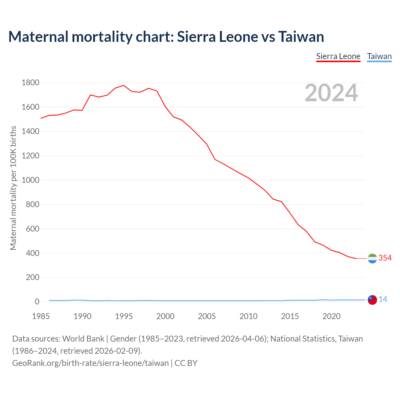 Maternal mortality chart: Sierra Leone vs Taiwan