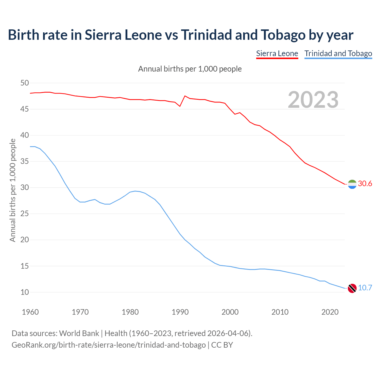 GeoRank.org/birth-rate/sierra-leone/trinidad-and-tobago | CC BY