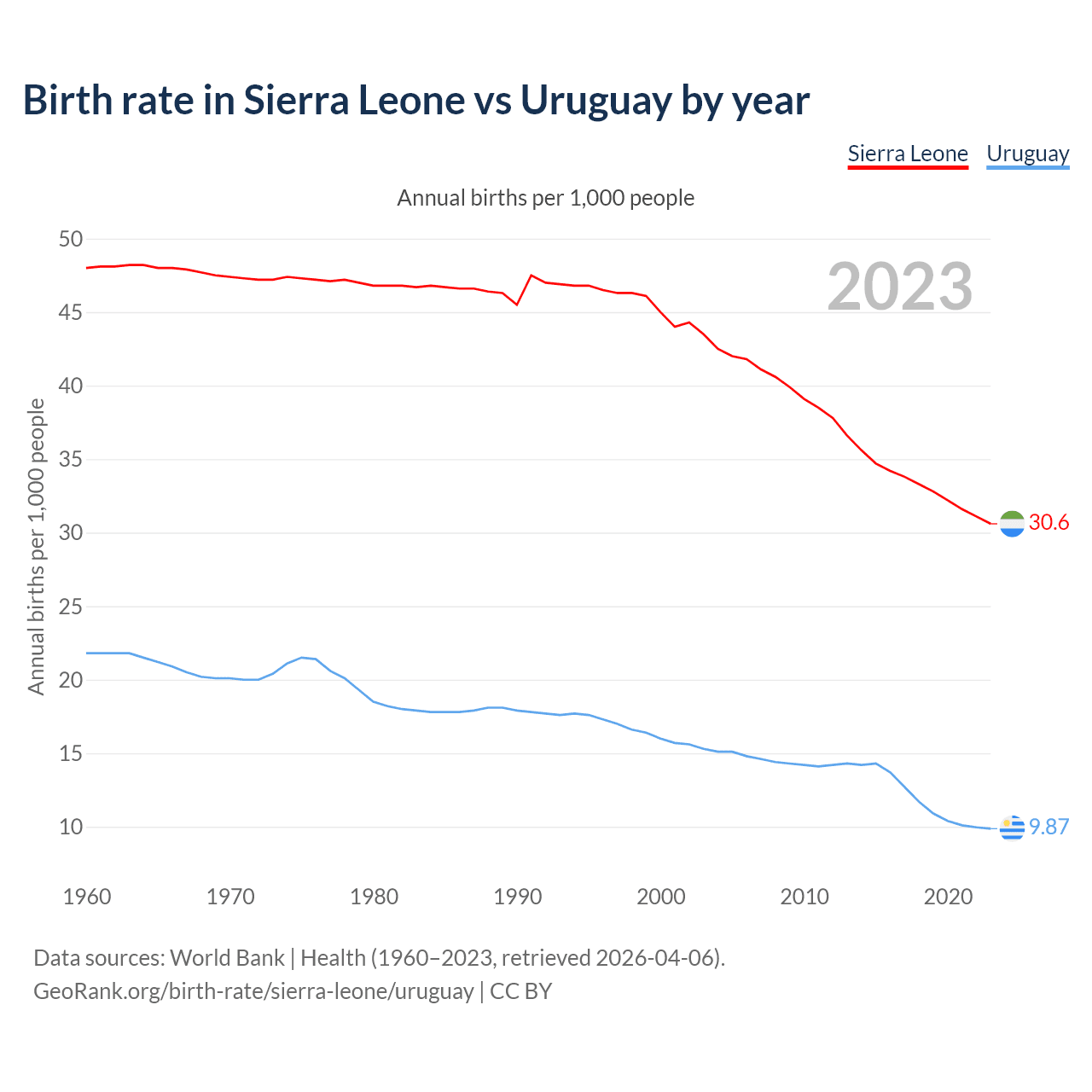 GeoRank.org/birth-rate/sierra-leone/uruguay | CC BY