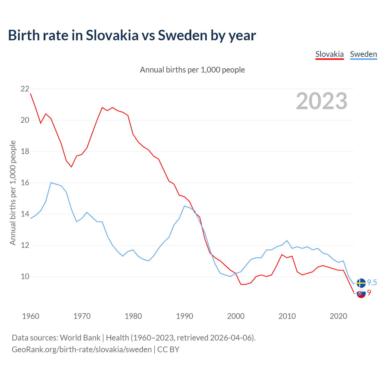 GeoRank.org/birth-rate/slovakia/sweden | CC BY