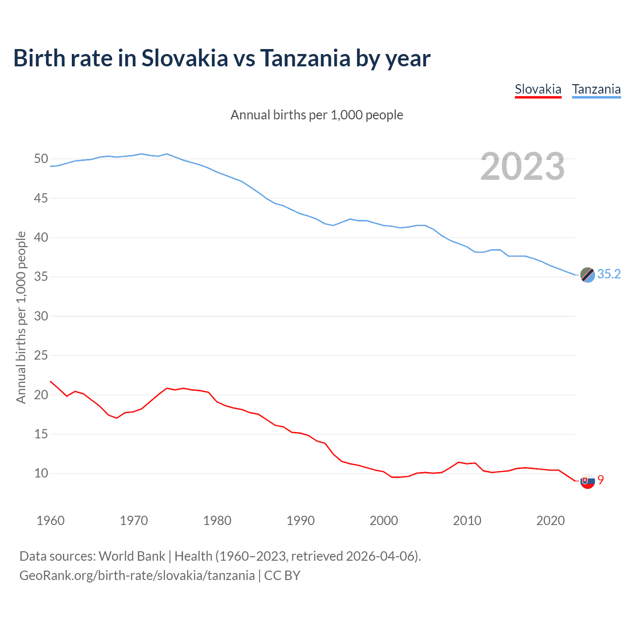 GeoRank.org/birth-rate/slovakia/tanzania | CC BY