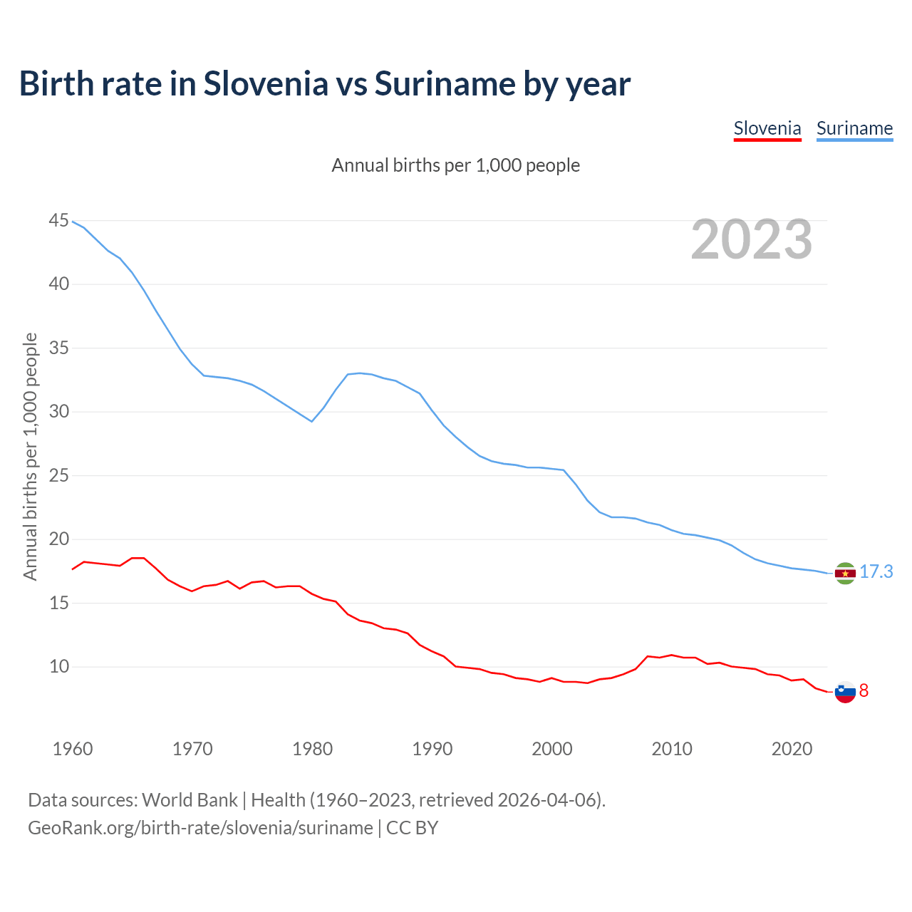 GeoRank.org/birth-rate/slovenia/suriname | CC BY