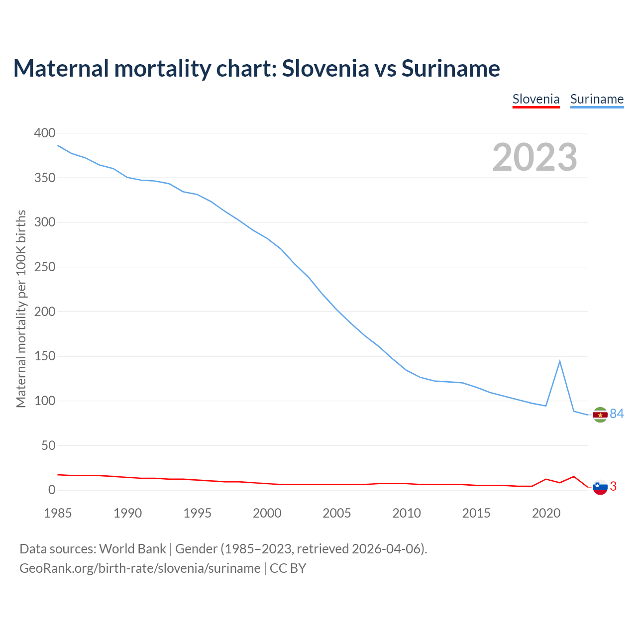 Maternal mortality chart: Slovenia vs Suriname
