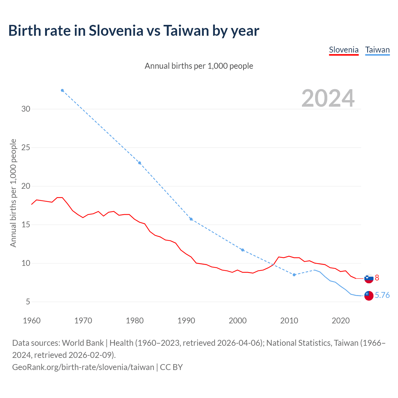 GeoRank.org/birth-rate/slovenia/taiwan | CC BY