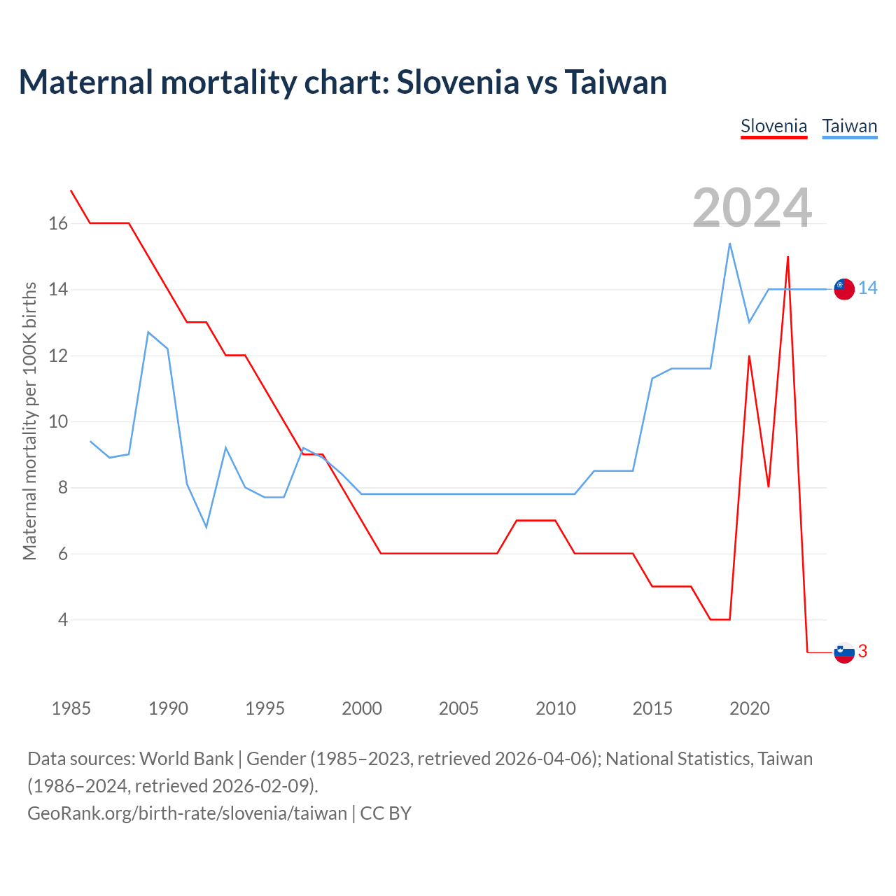 Maternal mortality chart: Slovenia vs Taiwan