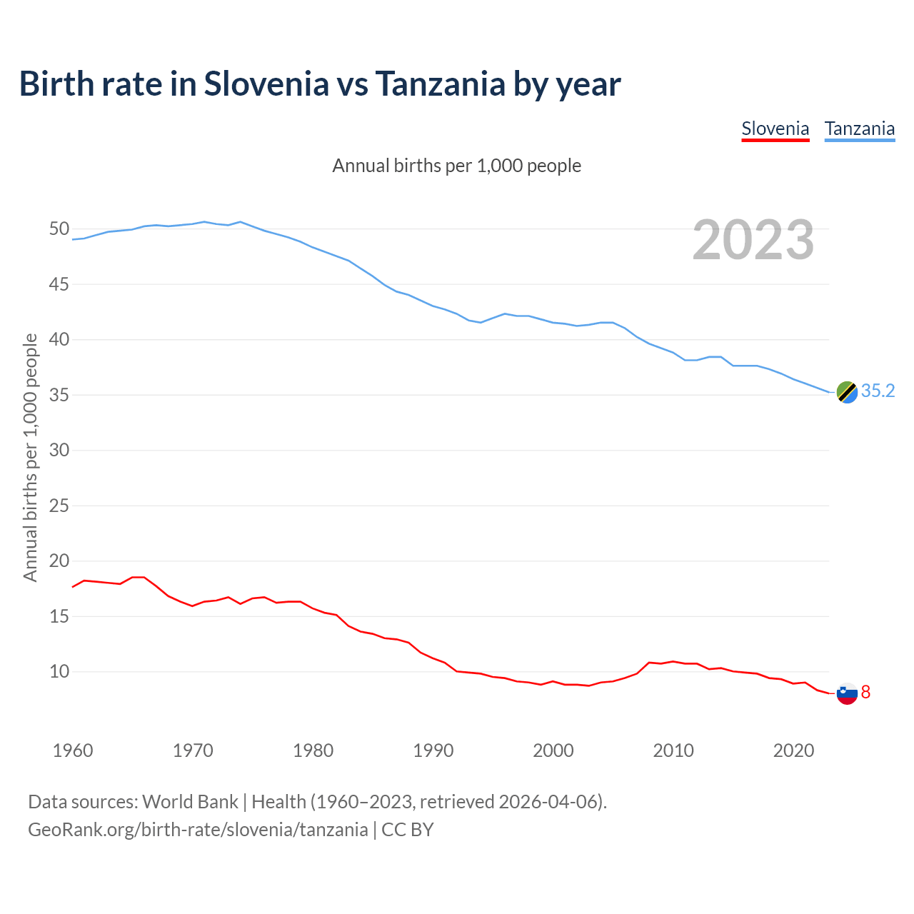 GeoRank.org/birth-rate/slovenia/tanzania | CC BY